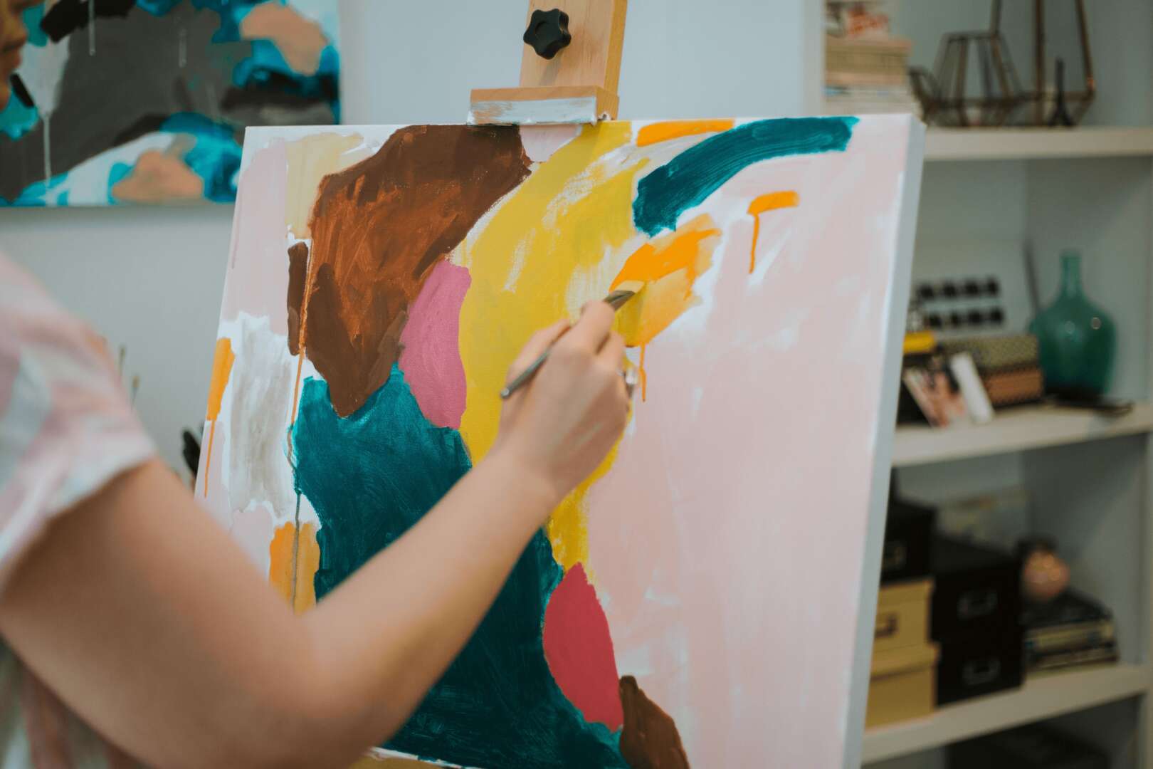 My name is Amy Early and I am an Abstract Artist from Charlotte, NC. Ever since I was young, art has always been an interest of mine. First it was just crafting, like most kids. Then I discovered and learned about composition through the discipline of photography. When I began using a brush and adding color to a canvas, that felt like I was truly doing something for me. The process of choosing color and letting the brush guide you into a creative work became so life-giving to me. I noticed it took effort but it felt so natural. I realized that I can tell stories and help make sense of the world without using words, with just the use of color and a canvas. I paint primarily abstract acrylic artwork and use texture, and sometimes other mediums to get my voice across. I have always been a lover of aesthetics. Environment is extremely important to me, and with the experience of remodeling two homes, I have realized the deep connection I have to helping people bring their homes to life. I don’t think a house is truly telling a story without artwork. Artwork can bring the homeowners voice alive and continue the process of creating a home so beautifully. It has become a passion of mine to partner with interior designers to bring joy to people’s homes with the use of my art. I am a mother of 6 children, wife to an amazing husband, and I have faced several losses in my life that have brought such a tapestry of laughter and tears, joy and pain. I believe life has suffering for all of us but it is of the utmost importance to maintain hope. Art has a way of bringing hope just by speaking the language of beauty. It is my greatest desire to continue to share the message of beauty and hope.