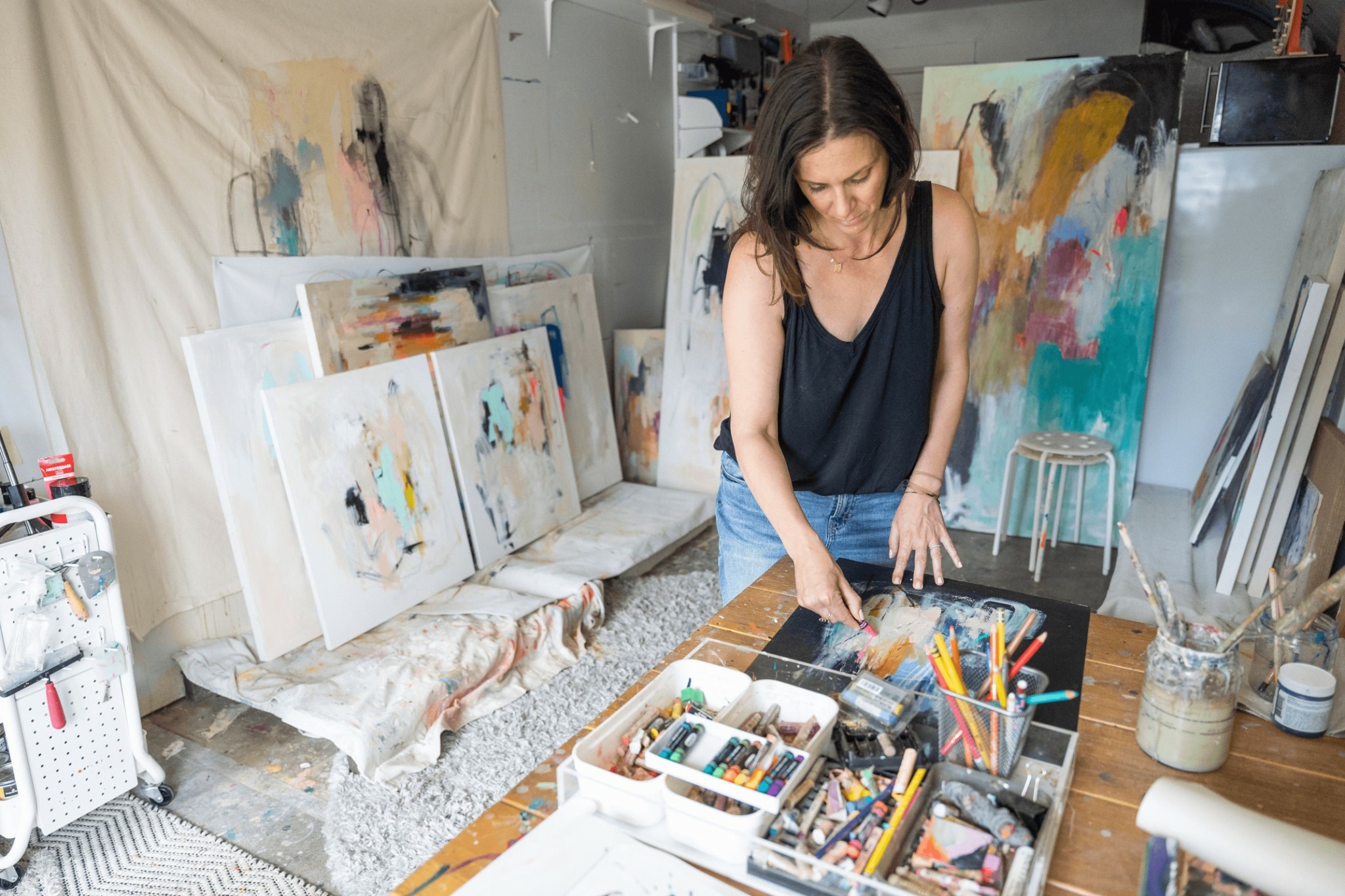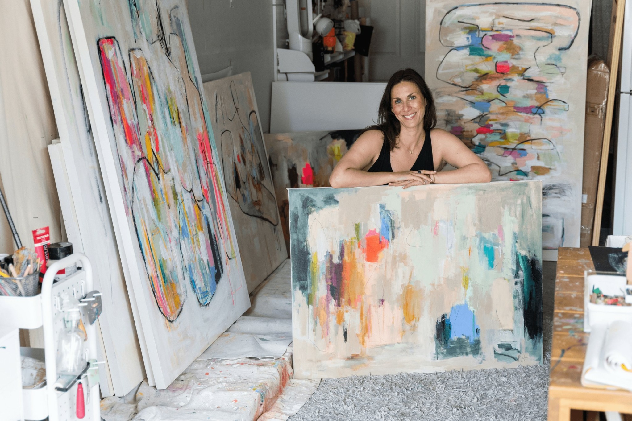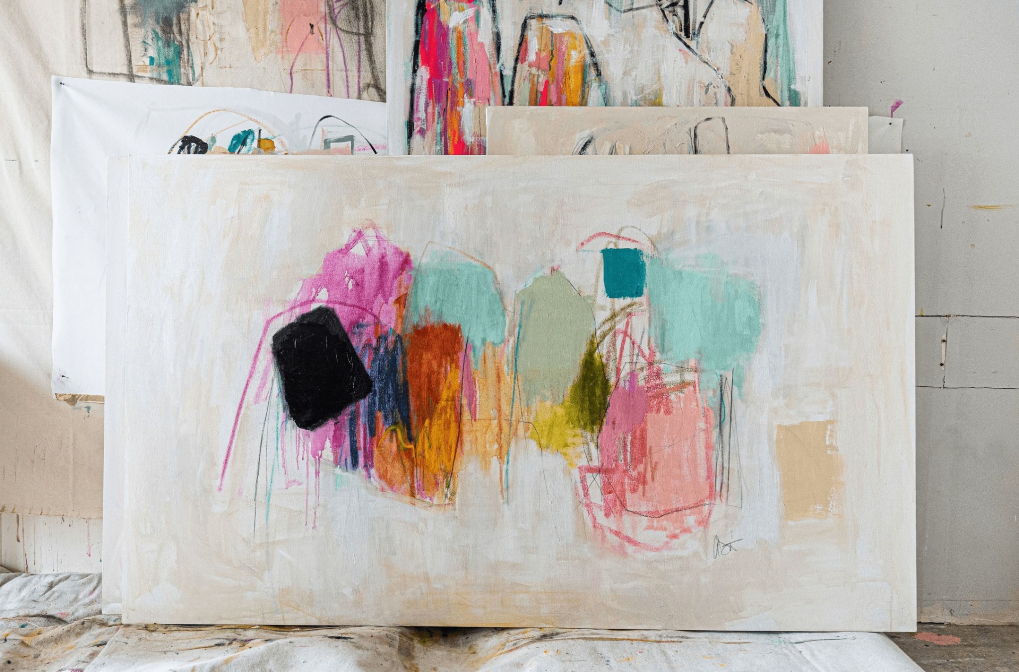 I am an abstract painter/ mixed media artist with a focus on abstract expressionism and the abstracted female form. Color is my love language and music is my muse. I do my best work intuitively, when I get lost in the process and something visceral takes over. Less thinking, more feeling = better painting.