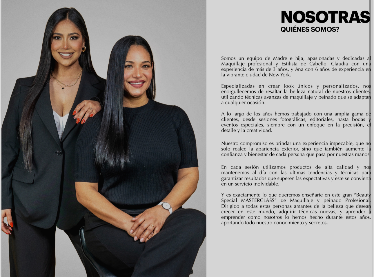 Llego un punto en que la industria de la belleza me permitió también emplear a mi Madre, Claudia Sierra, que actualmente es mi socia, amiga, maestra y compañera. Es la encargada de los peinados, una industria que en lo personal, tengo mucho respeto y no es que sea mi fuerte. Al tener a mi madre con este arte también en el equipo, abrió un mundial de oportunidades para obtener mayor flujo de clientes. Y fue allí, el punto en que todo cambio, porque tanto ella como yo, llegamos al punto de poder vivir y trabajar únicamente de esta industria, y gracias a Dios puso en nuestro camino, clientes fieles y hermosas en el camino.