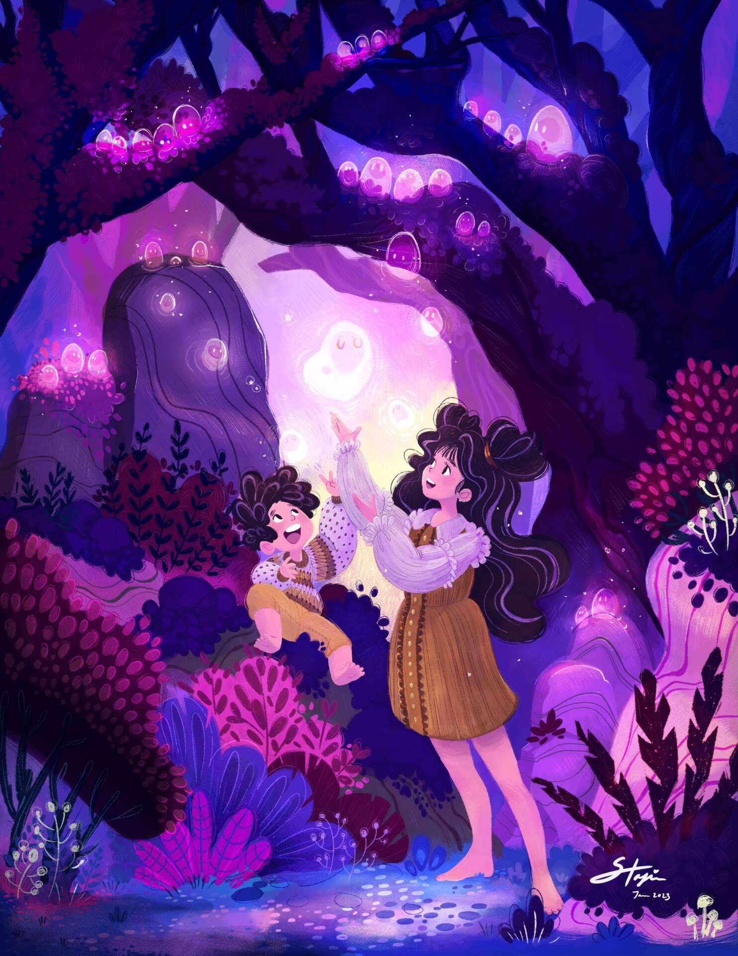 Inspiration-wise, I draw from an eclectic array of sources. I was born in Germany to a German father and a Korean mother and spent the first seven years of my life there. My parents thought it was very important to share both cultures with me, so I spent a lot of time exploring quaint little German towns while at the same time eating kimbap for lunch. From those early years, I developed a fondness for both the realistic depictions of Western classical art and the colorful, simplified forms of Korean children’s book illustrations.