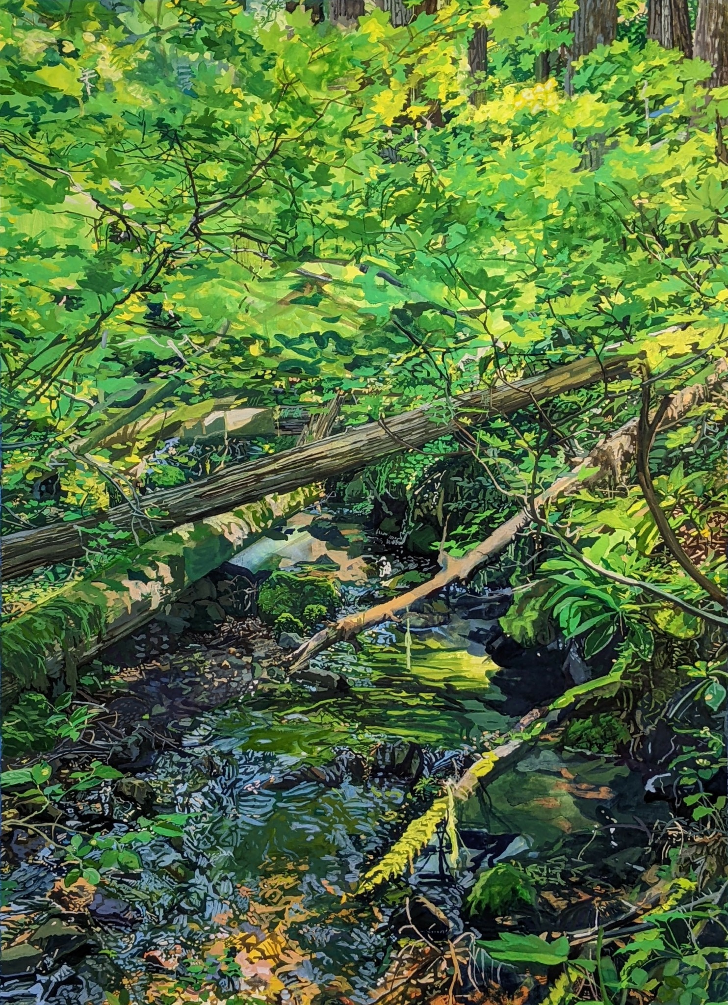 I’m a multidisciplinary artist, arts educator, and the proud owner of FREAK’N ART, a vibrant community studio nestled in Bend, Oregon. My artistic practice encompasses painting, fiber-based collage, and installation art, all of which explore our relationship to the natural world. My work focuses on the often-overlooked plant life of public spaces, capturing the lush density of these environments in detailed compositions that spark wonder and captivate viewers.