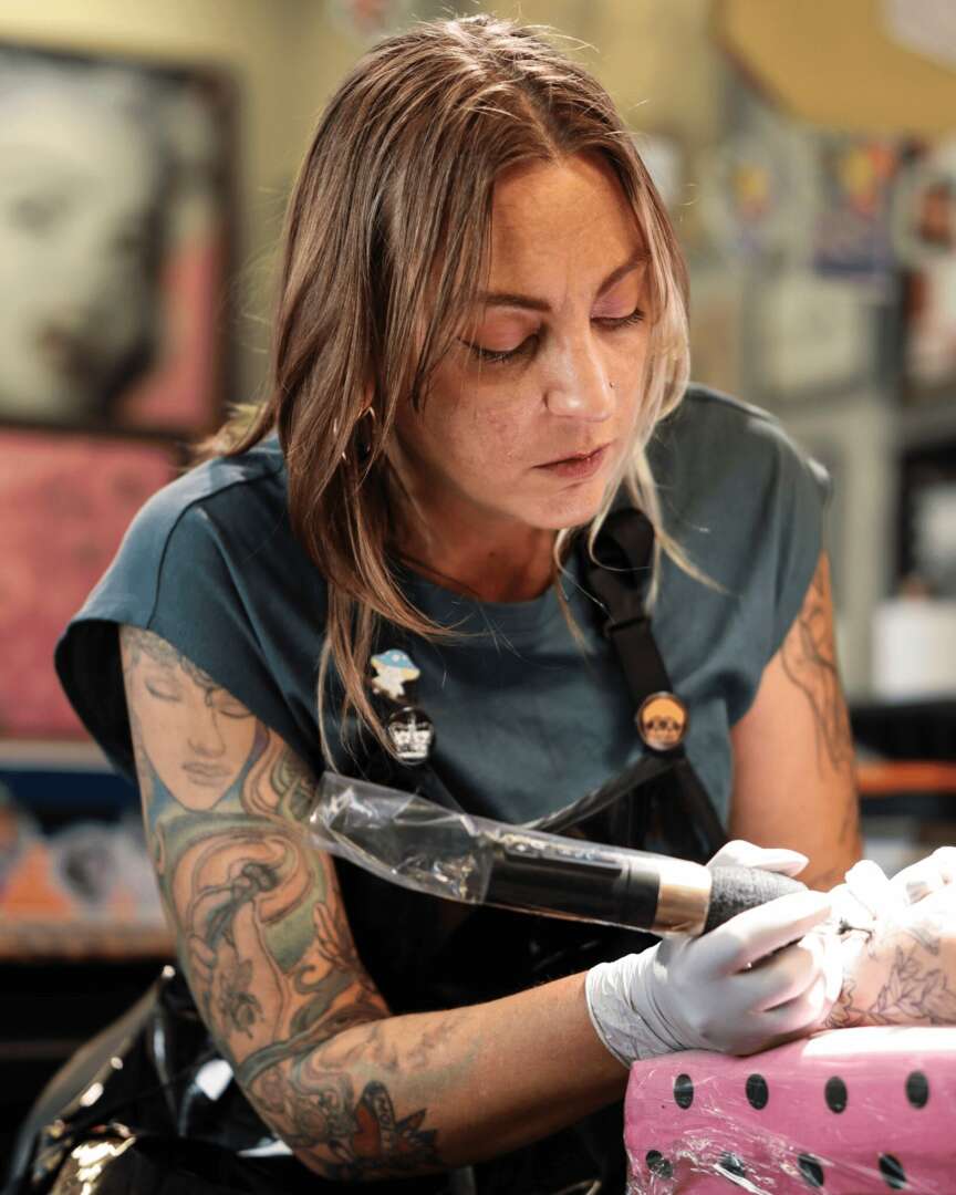 The most rewarding aspect of tattooing, for me, is the client relationship. Without the spark of desire from the client to want to express themselves, to represent a connection, to be comfortable and trusting enough to let me create for them, there is no tattoo. I also really enjoy reworking old tattoos that may just need a little refresh or covering tattoos that people don’t love anymore. It’s very thrilling to see people develop new love for an old tattoo. Being a part of the renewed or newly found self confidence of my clients is very fulfilling.