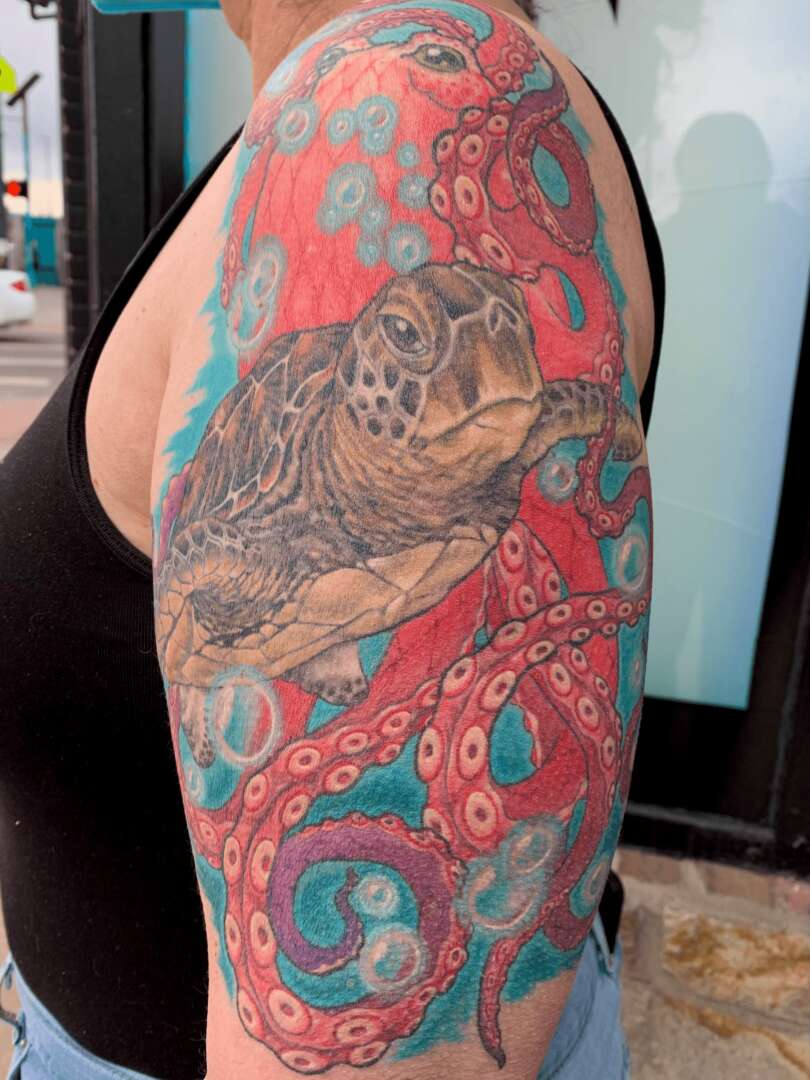 Creatively, I find myself mostly drawn to lore, mythology, fantasy, psychedelia, symbolism, history, natural elements, whimsy and the occasional silliness. With a profound love and respect for the long history and culture of tattooing and tattoo longevity, I find myself using more traditionally inspired techniques and design elements. The old adage “bold will hold” rings more true with each passing year of a tattoo career and I aim to make tattoos that can live well with their person.