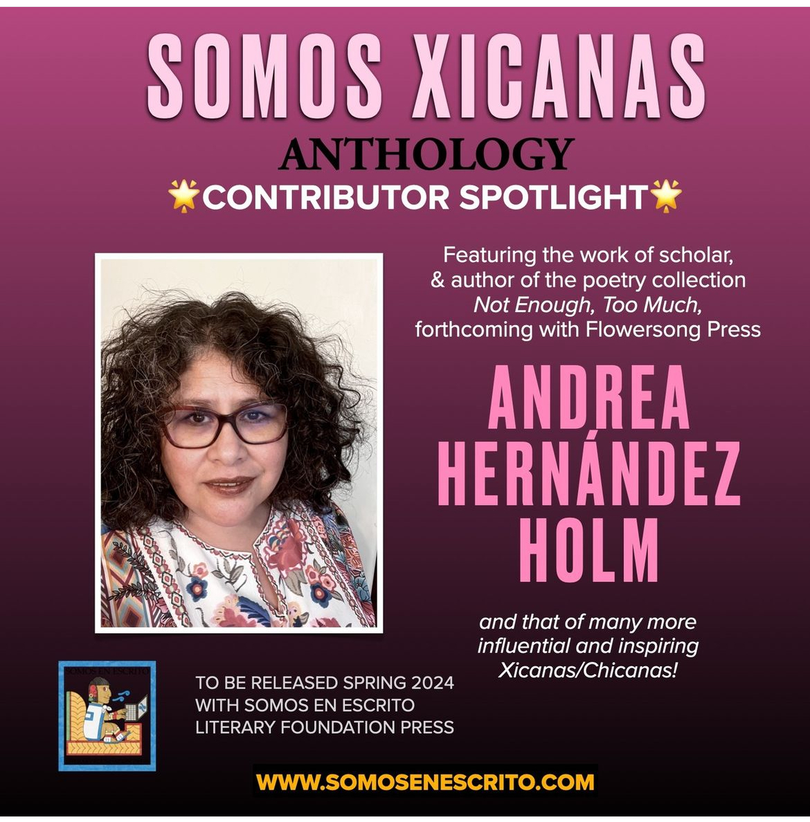 I began sharing my poetry publicly most notably in 2010, when my home state of Arizona implemented the racist bill SB 1070 and other efforts that worked to legalize discrimination against people of color, immigrants, and Ethnic Studies programs. I could not be silent in the face of clear and brutal efforts to disappear and silence the histories and presence of my community and others like it. I was invited to join the moderating panel of the group, Poets Responding, and assisted in establishing and facilitating a regular conversation and public sharing of poetry by international poets that continues today. As part of this group, I presented at national conferences about the urgency of action against discriminatory laws and the power of poetry to shape public perceptions of social justice. Several of my poems generated during this time were published and two were later translated into Spanish for additional publications. In addition, the poem “In Response to the Man Who Asked, “Why do your people march for everything?” was re-published in late 2024 in Putting the Movement back into Civil Rights Teaching, a textbook published by Teaching for Change. I am proud that I have maintained a writing and publishing momentum over these last several years and my first collection of poems, Not Enough, Too Much, was published by FlowerSong Press in February 2024.