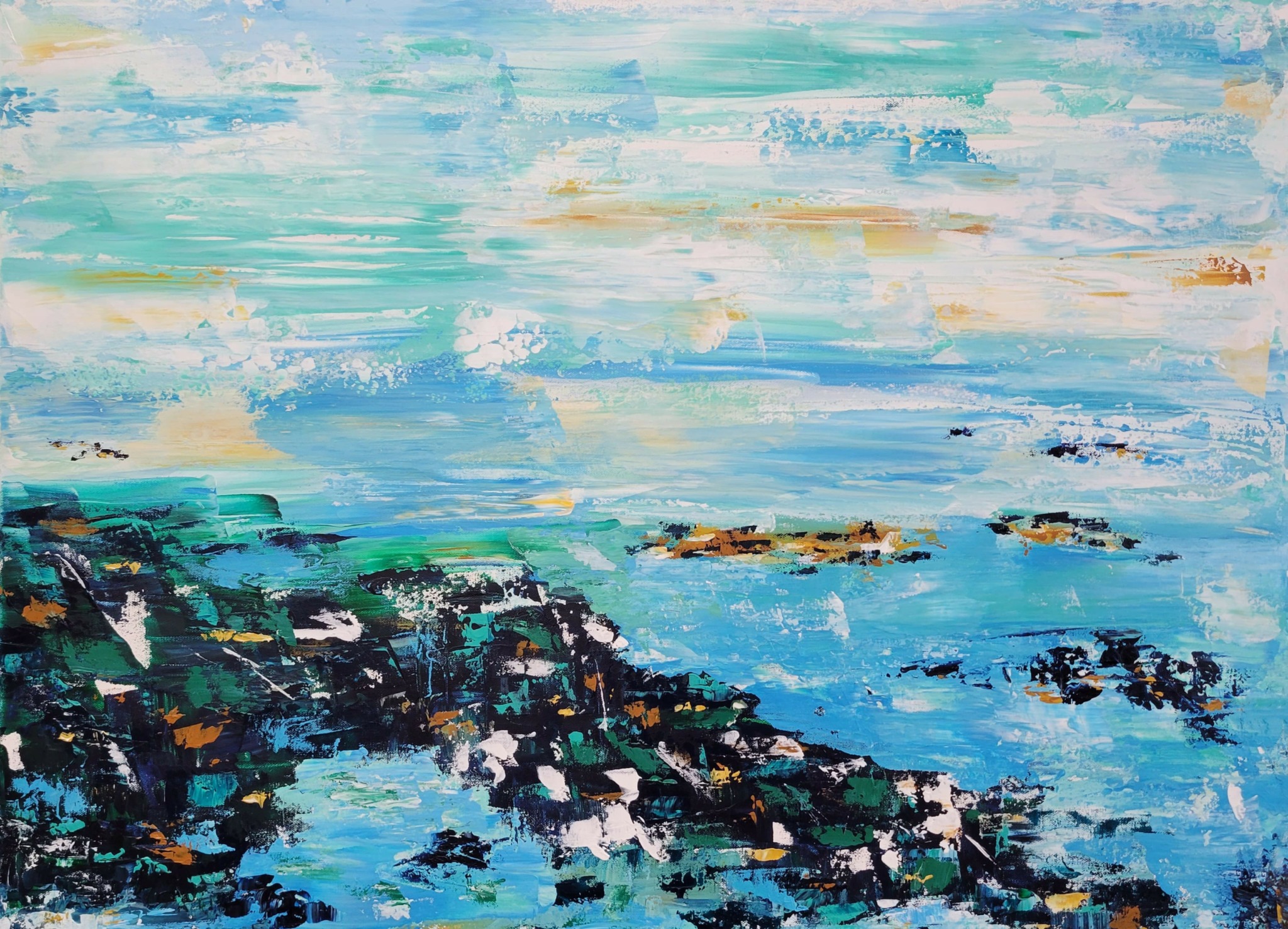 It’s very difficult to come up with a truly “unique” process given the creative range of modern artists. How we combine our individual approaches is what makes each artist unique in some way. I try to find new ways to combine materials but I am sure someone else has already tried it. Recently I have been using a clear plastic sheet material called Dur-a-lar, which I like both to just try out something since I can lay it on top of a canvas or paper to test an idea, as well as to be part of a mixed media work itself. I can glue a painted layer of Dur-a-lar on top of painted canvas or wood panel to increase the sense of depth, layering. There are more experiments I plan to try with this material.