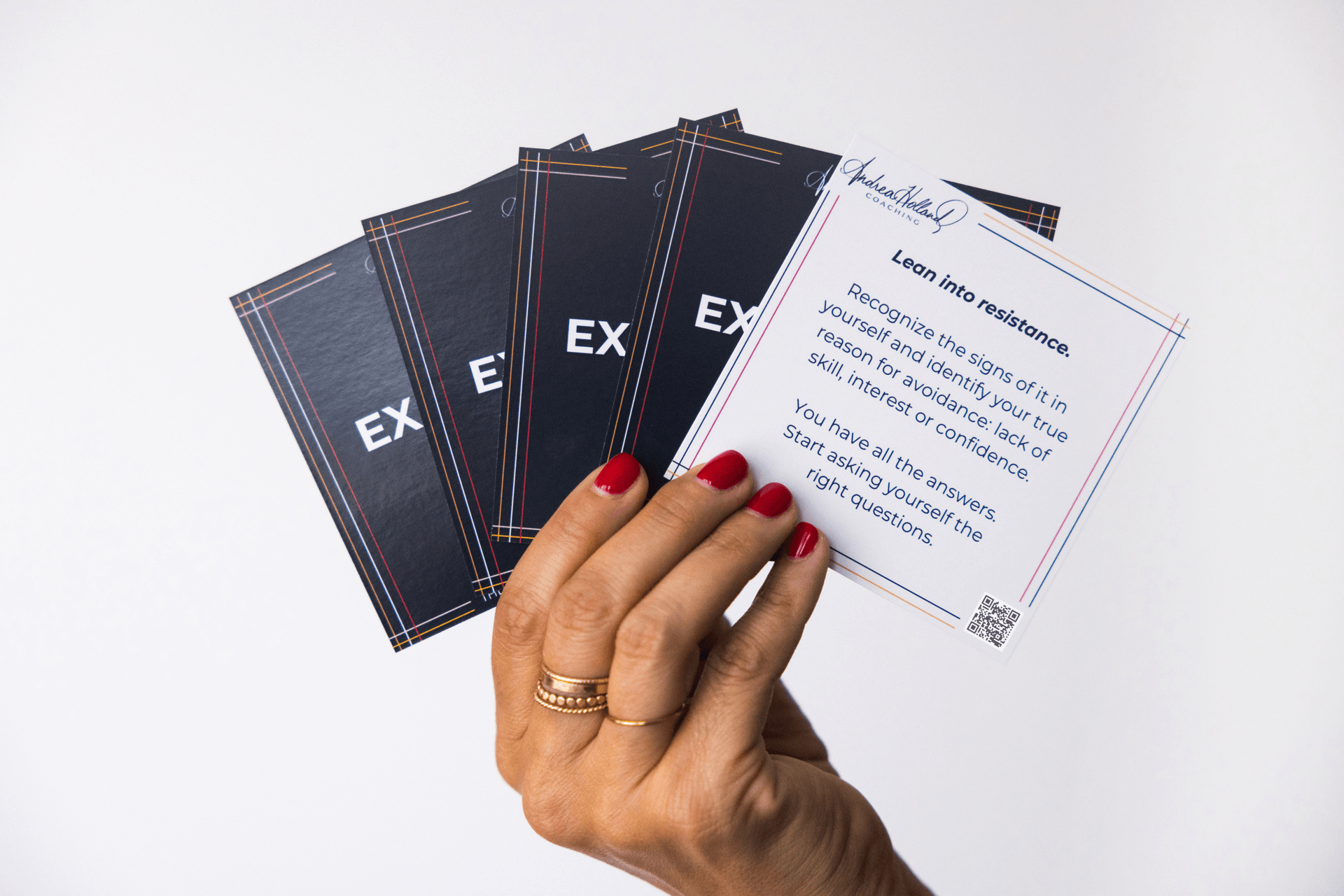 Launching The Executive Deck, our signature multimedia coaching cards, is one of the most innovative things I’ve done in my career. It all started when a client once pleaded with me to join them at a major negotiation; to literally sit at the table with them as they faced off with a difficult colleague. They were terrified to sit alone and stand their ground. I knew I couldn’t be an Andrea-sized fly on the wall of that room – but what if I could give them something just before they walked in that would center them and offer them legitimate advice they could take action on immediately? That was the moment the idea for The Executive Deck was born.