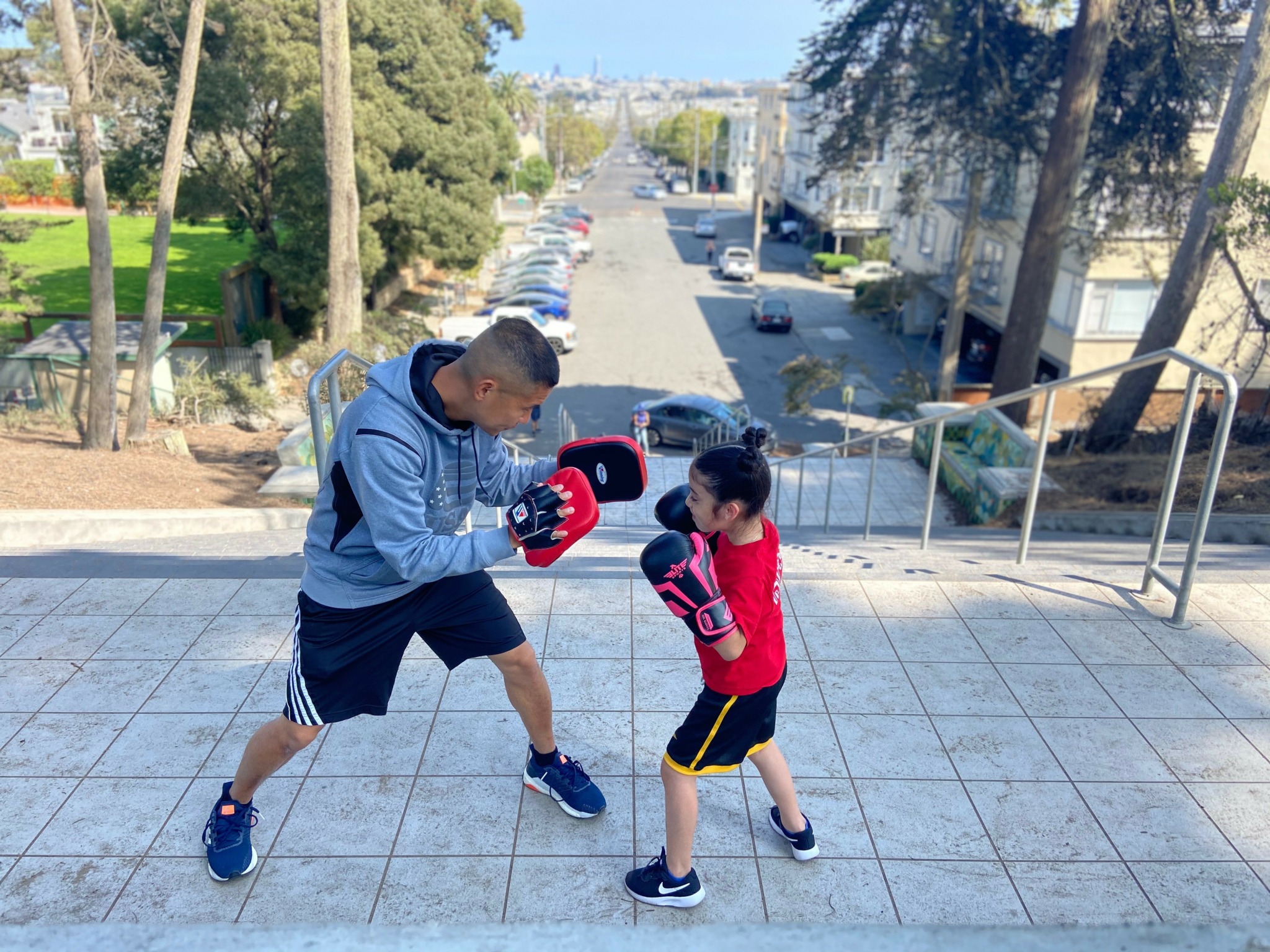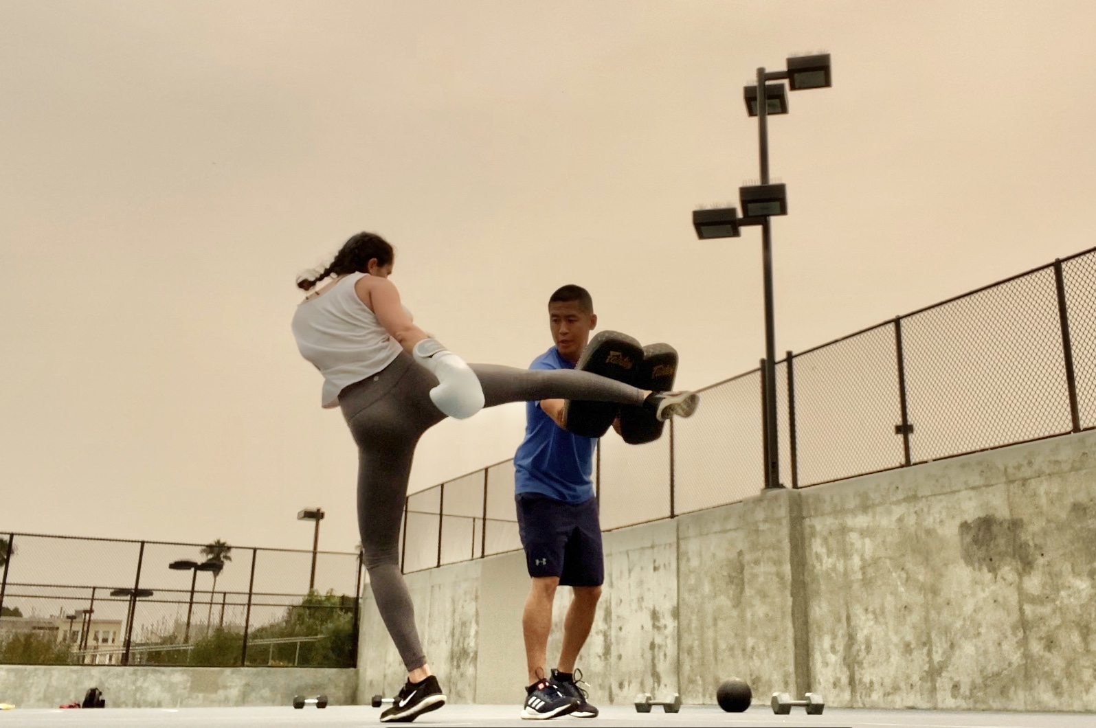 I know I am not the only one to experience this, but Covid was a time I had to pivot. Residing in California at the time, everything was shut down where we could no longer work indoors. That is when I brought my business outdoors and continued my role as a trainer. And in a way, my business benefited from the shutdown. Many individuals were confined indoors for work, which adversely affected their mental well-being. Therefore, the opportunity to exercise outdoors, coupled with the ability to punch and kick something, provided exceptional stress relief for numerous clients. Even now, I take pleasure in training clients outside, enjoying the abundance of sunshine and fresh air!