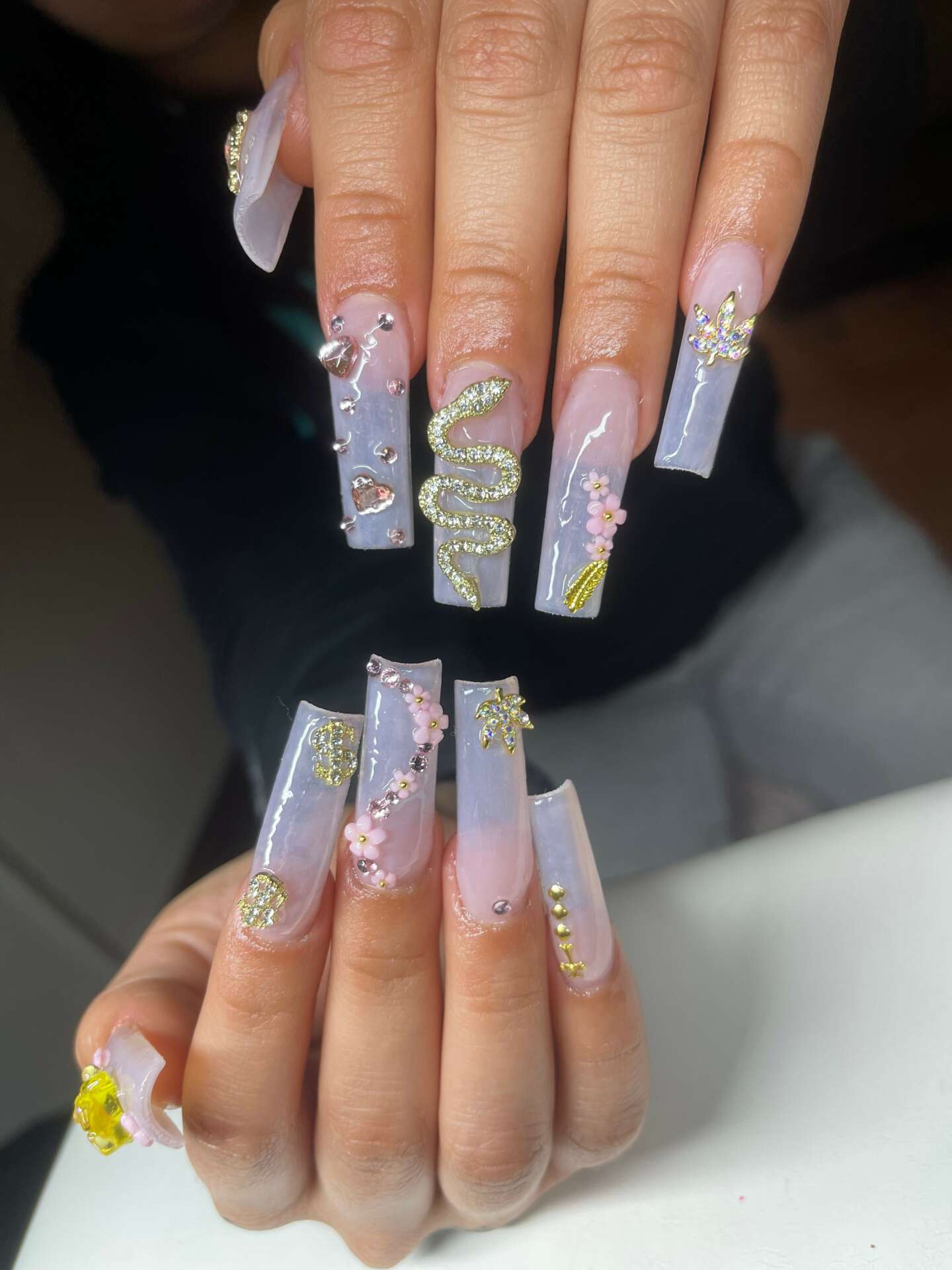 Any and everyone is welcome. I do not discriminate and I provide a safe space for all. Whether you want to be silent or chat I am open to it all. Anyone looking for a nail technician to try that cares about the health of their nails, can come to me for their services. I’m always open to trying new styles looks and ideas so my spectrum of designs is very broad.
