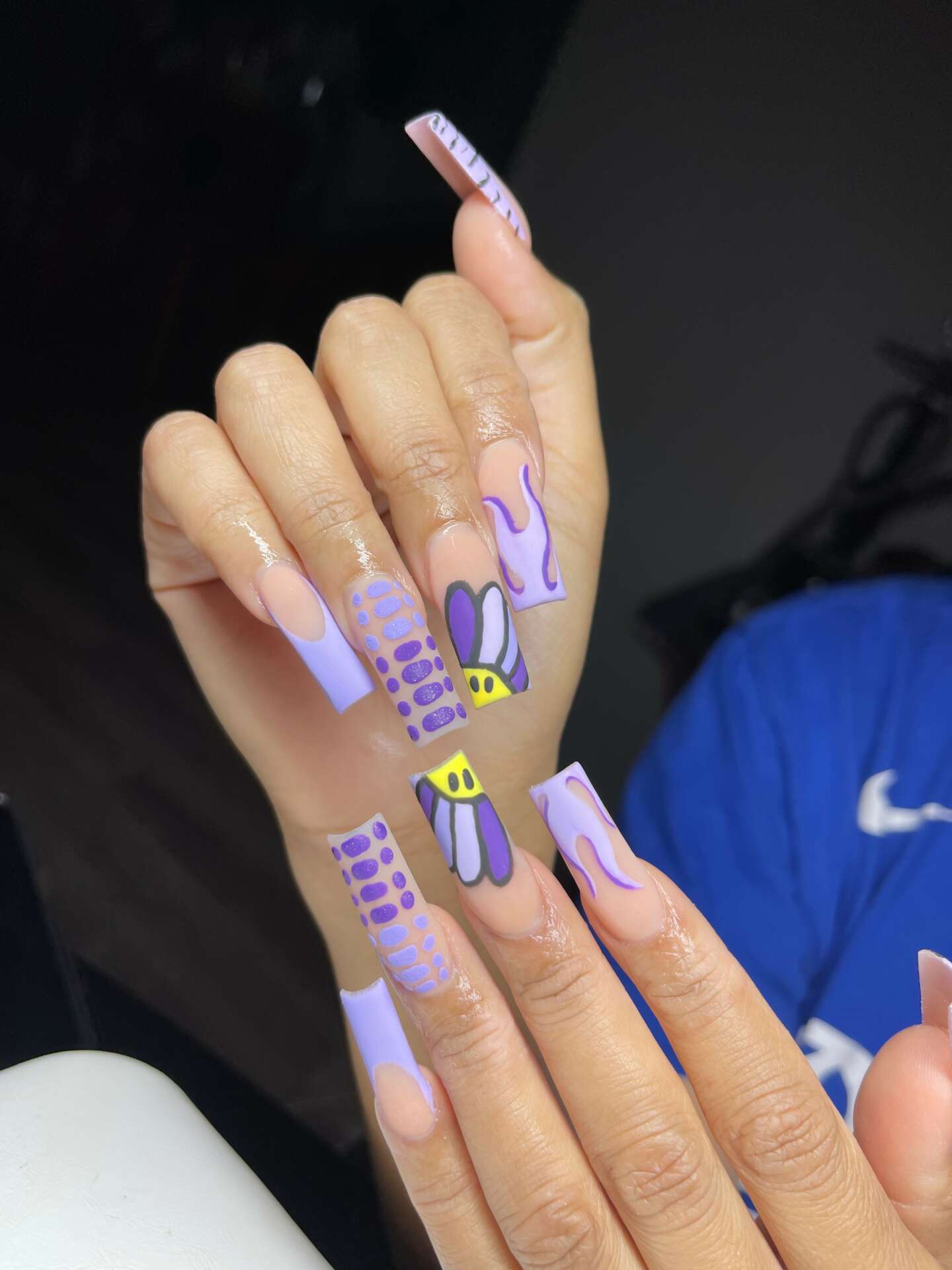 Any and everyone is welcome. I do not discriminate and I provide a safe space for all. Whether you want to be silent or chat I am open to it all. Anyone looking for a nail technician to try that cares about the health of their nails, can come to me for their services. I’m always open to trying new styles looks and ideas so my spectrum of designs is very broad.