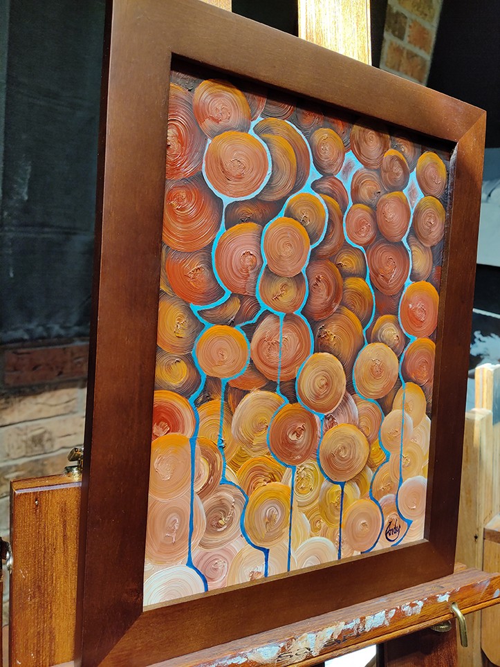 I’m a 42 year old fine artist and muralist residing in Mckinney, TX. I first had the opportunity to branch into the art world professionally when I was 23, finding work with a business that was aligned more with the commercial art world. They had me painting murals, doing faux finishes, and even sculpting foam and concrete to create really cool environments and props for museums, restaurants, businesses, and even some private homes. I worked with them for about 6 years or so before I set out on my own for a short stint. Unfortunately, I had a lot to learn about self-marketing back then and with the economy tanking at the time, I had to put the creative endeavors on the back-burner for a while to make ends meet. I knew I would eventually get back to it, but sometimes life throws you curveballs and my re-entry to the “full-time” art world was delayed longer than I had hoped. Finally, I started Andy Buchanan Art, my sole proprietorship, in 2022, and have been painting and running the business ever since. Currently most of my sales are from word of mouth and website sales. At this time I sell original oil paintings, signed giclée art prints, and even some artistic photography prints. Some of my paintings, especially my murals, are commission-based, which gives me a chance to create something truly special for my customers. I really enjoy talking to my clients to get an idea or basic direction of what they are looking for, and getting to flex my imagination and create a pieces that not only impress them, but also potentially cause emotional responses. Knowing that I can create something a person or business admires so much that they buy it to put in their home or office is a wonderful feeling. I definitely look forward to what creations I come up with in the future. Most of my personal work lately has been a mix of realism landscapes, some surrealism, some abstracts and a few still life pieces, but having a background where I’ve had to produce art in many different styles has come in handy, and allowed me to not stay limited on what I can potentially create. The more people that can enjoy my work the better.
