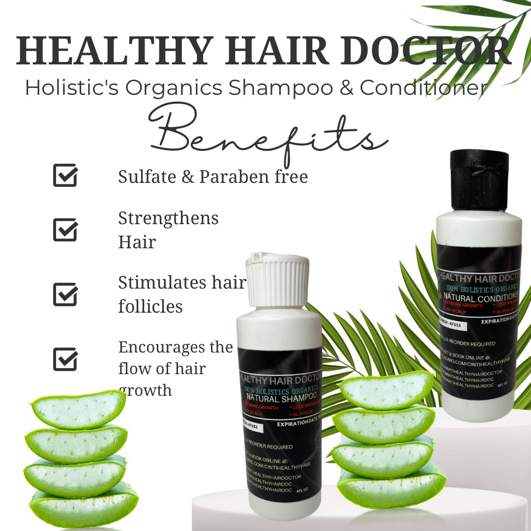 In March 2020 the world had stopped. I was working full time as a Cosmetology & Esthetics Instructor. I remember getting a call from my boss that the country was shutting down and we need to let the students know and pack our things and leave the school immediately. I remember being so scared of what was going to come. I was so stressed and confused at that time. After a few weeks I started to really take time to dig into me. I started my weight loss journey, and lifestyle change. Every day I took time to really take care of me. I stopped wearing makeup and really focused on healing myself. During this time I made a decision to change my hair also. After 20+ years of relaxing my hair, my hair had just got to a place where it was brittle, dry, receding, and shedding. Not only was my edges breaking off but my ENTIRE head of hair was coming out! I decided to let go of any hair that was relaxed. I cut 12 inches of hair off my head all the way to my new growth leaving only 2 inches of hair on my head. When I tell you I felt so free it was amazing! I didn’t know what products to buy for my hair so I started buying some of the most popular natural hair care lines. I spent several hundreds if not thousands of dollars on hair products that simply did not work on my hair. I got tired of trying a new hair product to only get disappointed. So then, I decided to look into organic hair care. I started reading older books on how we used to care for our hair before we used all these products that chemicals were added to. I started researching how our natural resources can not only benefit but actually grow our hair! I tried just a couple of concoctions and to my surprise they worked better than ANY of the brands I tried. After months of trail and error I finally came up with the perfect hair products that not only maintained my 4c hair but it also made my hair grow like a wild fire! My hair grew so fast that my clients took notice. My results made my current clients want me to use my new found hair products on them. Needless to say the results for them were also amazing! They hair grew like crazy! I knew then from the results everyone was receiving from my product line that my product line and hair treatments would be a worthwhile endeavor. This is how my vegan product line Healthy Hair Doctor was born and how my hair treatments begin!
