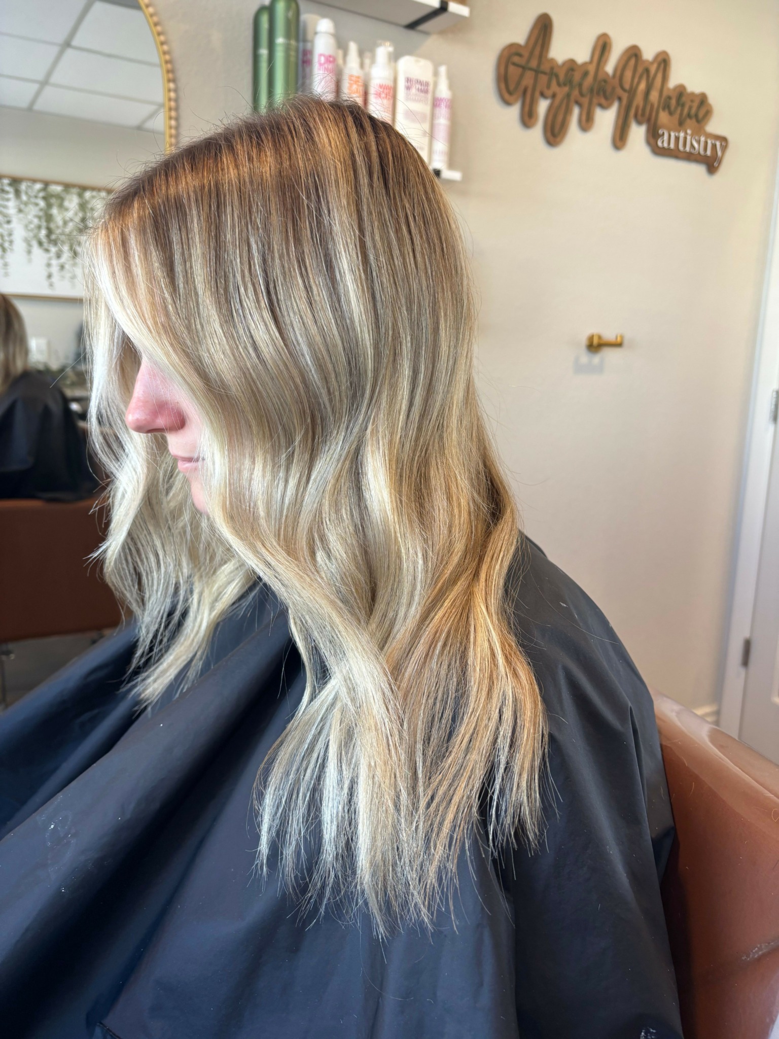 Hello! I am Angela Apodaca, owner of Angela Marie Artistry established in 2021. I am a mother of 3 littles, wife, and business owner. I started my journey in the beauty industry in 2016, I always loved doing friends hair for school dances and the creative side of hair. Out of high school, I was in school to become a nurse. My heart was always to help people and thought that would be a great path. A few years working as a CNA I realized, I like this job but I don’t love it. These patients deserve someone who loves it. Then that took me back to where my heart really wanted to be, Hairstyling. I enrolled and have had the best journey since. My clients have given me the title of ‘hairapist’ (Hair Therapist) and I still feel I get to help people in a different way.