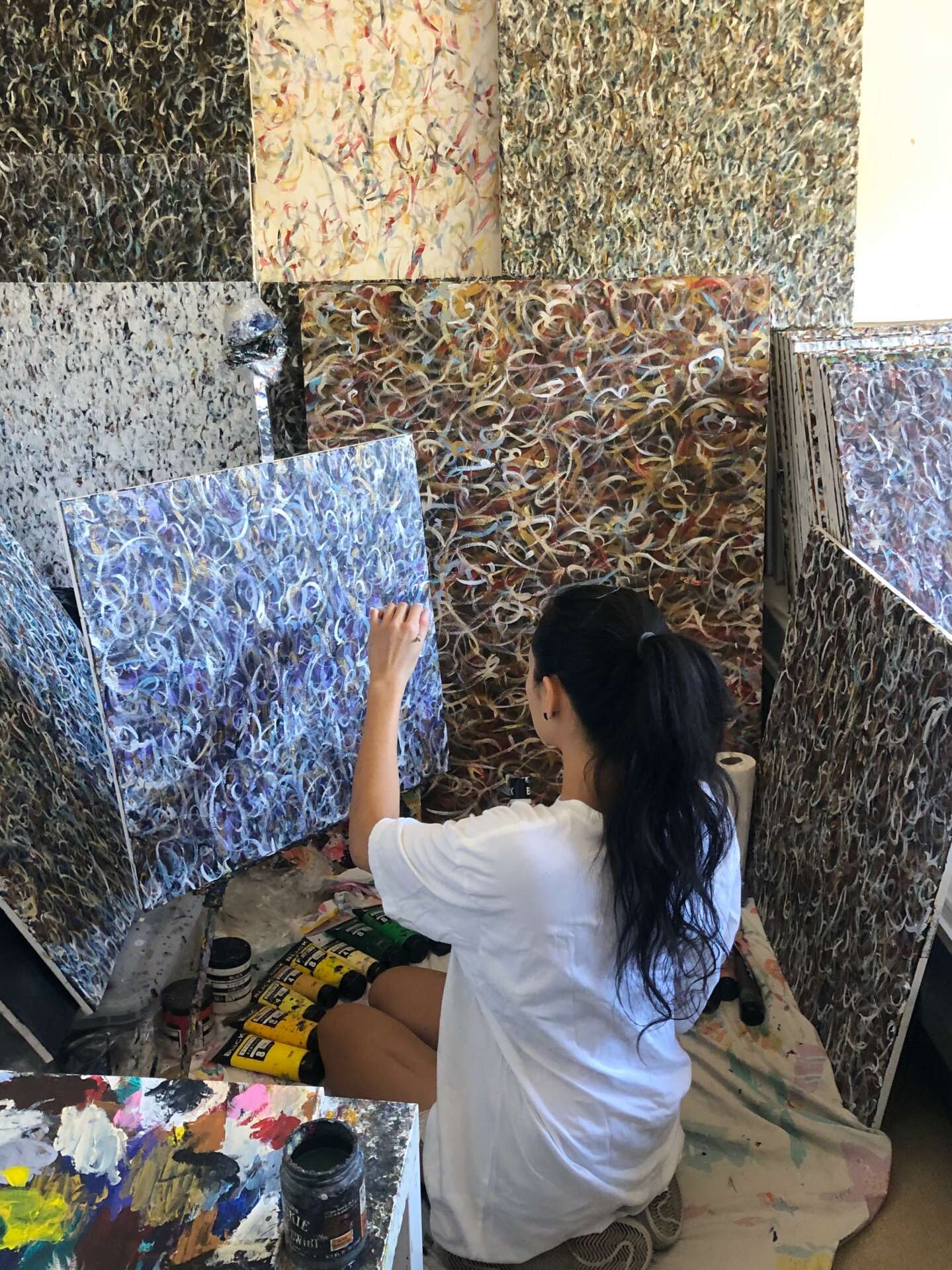 Painting (abstract expressionism) has taught me that the less I try and control things, the better they turn out. This isn’t to say to not put in any effort, but more of just painting without forcing the result to look any certain way. I realized that when I have a structure and have an expectation of how the painting should turn out, they always come out not looking free, and have this “restricting” energy to them. When I quiet my thoughts and just surrender to being a channel for the energy to come through me, the intelligence knows what it’s doing. It doesn’t need my conscious mind to get in the way.