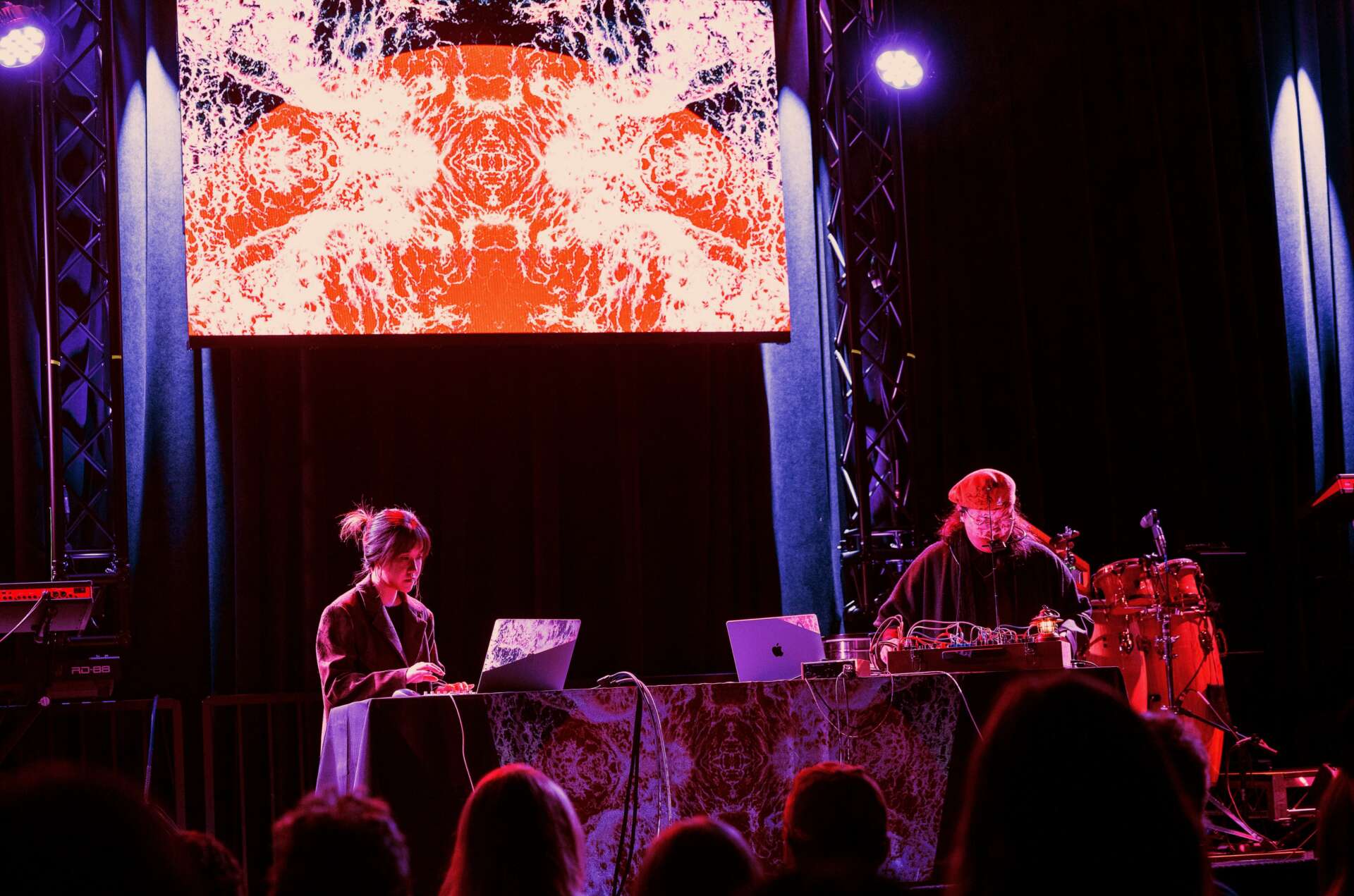 We spent a lot of time brainstorming how to integrate visuals and music to create an immersive live show. We designed our approach to combine three methods: pre-rendered clips, live MIDI control, and real-time BPM audio reaction. This required me to learn new applications, and we faced numerous technological and connectivity challenges. But in the end, we handled them perfectly. The show was a success, receiving excellent feedback from the audience.