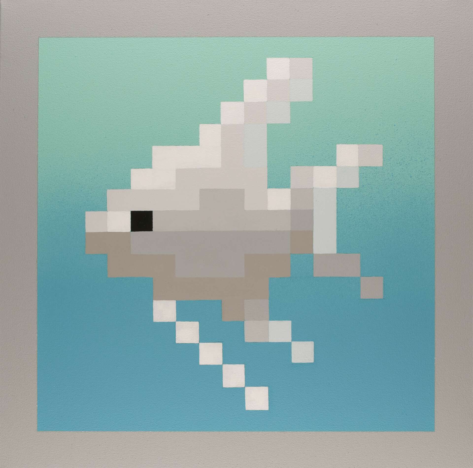 My work is an exploration of the pixel, turned pigment. The final images are rendered in paint, but they are a hybrid of both digital and analog processes. I create detailed digital sketches that are inspired by a combination of found imagery from the internet, vintage video games, and other forms of computerized visual communication. The preliminary digital sketches are then translated into physical paintings as a means of exploring one of the key characteristics of 21st-century life, the constant influence of digital technologies on the mind/body; a play between the virtual and physical, the tangible and intangible.