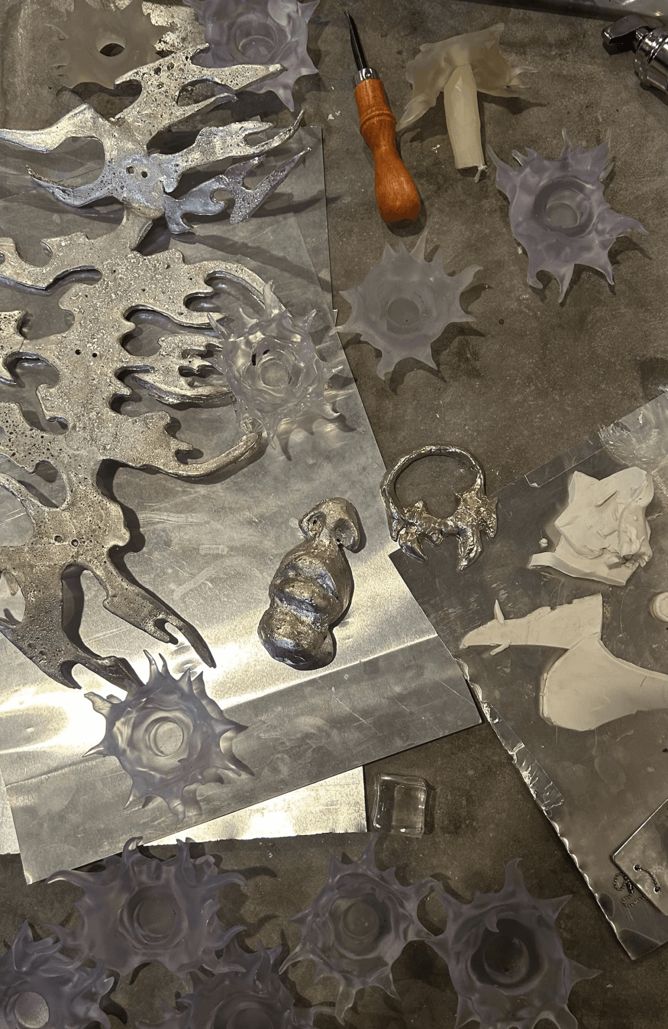 My creative practice combines traditional craftsmanship with experimental techniques, such as metal casting, 3D modeling, silicone molding, wax working and recycled material integration.