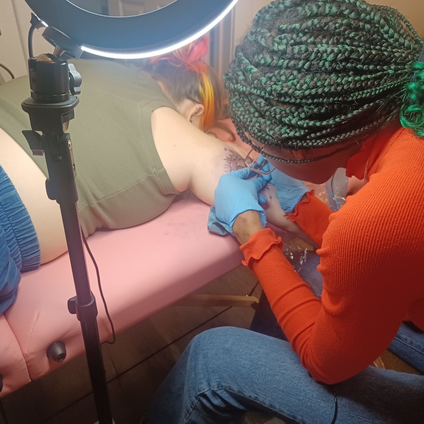 My current primary form of art, tattooing, is something I realized my passion for during the pandemic in 2020. Seeing how permanent tattooing is, it was a natural progression from my printmaking experience. As a Black individual who is fascinated by tattooing, I have found that there is an extreme lack of Black tattoo artists and Black inclusive tattoo spaces. Through my work, I aim to help change this situation and advocate for more Black creatives to jump into the field. With this, I also want to help provide inclusive spaces for all identities to feel welcome to getting their ‘forever art’. Receiving a tattoo is an extremely intimate process, which involves a sort of transformation – physically and spiritually. This process is one that should be treated with high regard and professionalism, which I hope to provide for any client looking for a tattoo.
