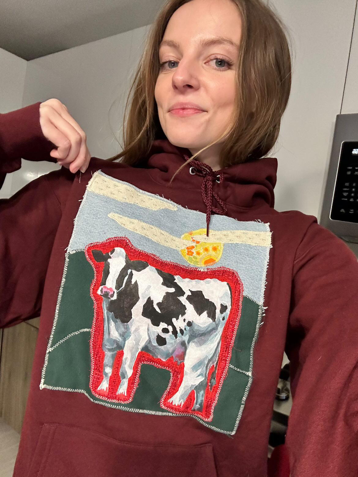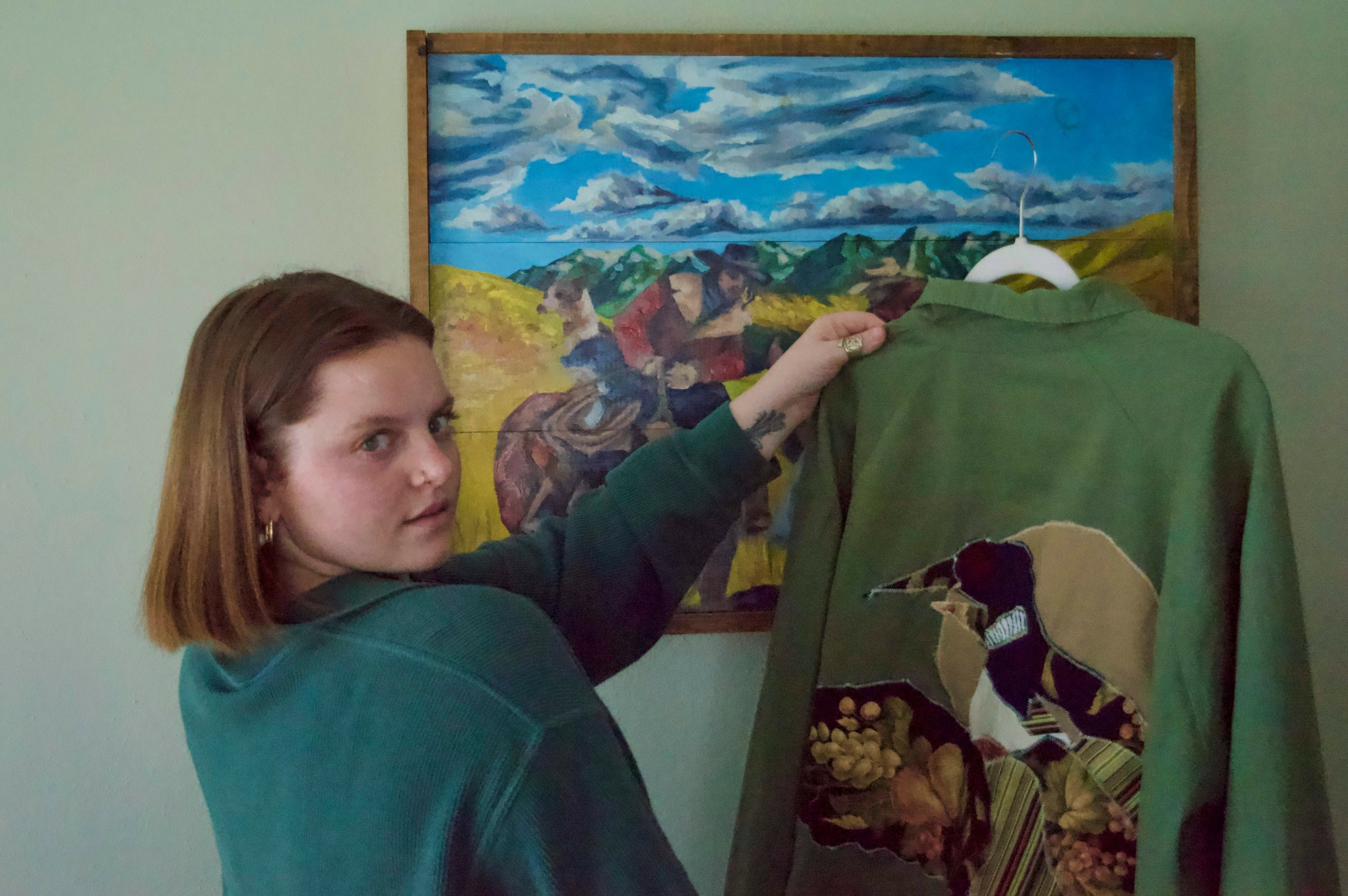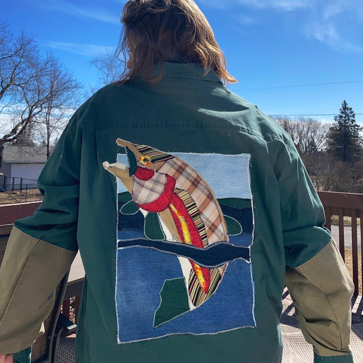 My name is Anna Kidd with Wild Kidd Design, a small business where I take thrifted clothing and canvases and give them a second lease on life with oil paint, a sewing machine, and/or linoleum hand-carved blocks. I also have a passion for capturing people’s beloved pets and moments in nature with oil paint on a canvas for a unique and personalized gift that will last lifetimes. Recently, I have also starting hosting classes in the community where people can use my hand carved blocks to decorate their own bandana or bring old clothes to spice up.