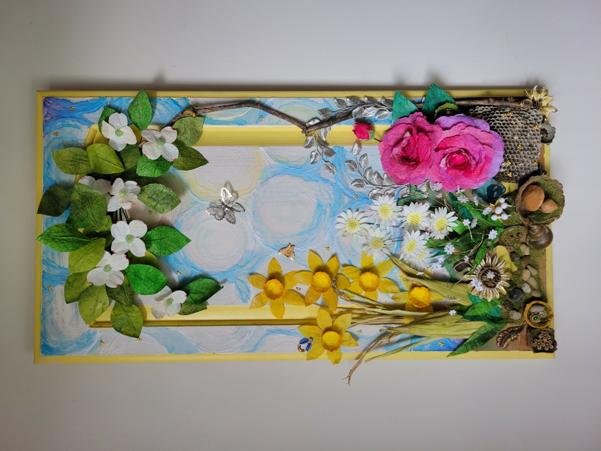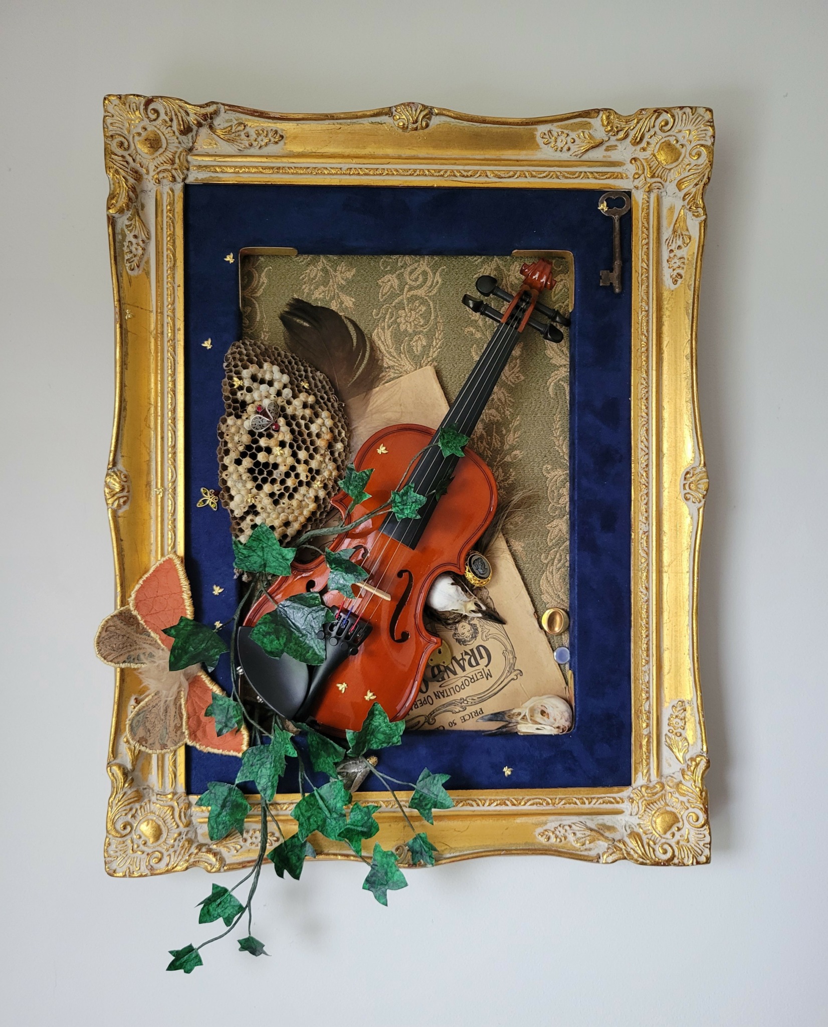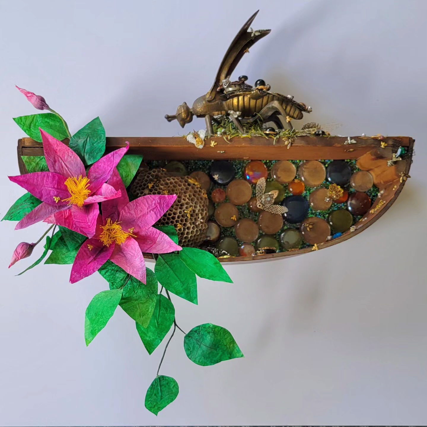 I have always been in creative mode for as long as I can remember. I grew up with parents who creative and were always trying new things. My own curiosity had me moving in that same vane. I have had a lot of creative pursuits- bead embroidery, tapestry weaving, quilling, and sugar art. For 20 years I had my own business working as a pastry chef and a sugar artist, making custom cakes for clients. I was fortunate enough to have my work published in the USA, the UK, and Russia as well as receiving accolades along the way. My favorite part of that was mimicing a variety of techniques and mediums into something edible. When I switched from edible to non edible art, I was determined not to limit my options, and so took on the title of a Collaborative Mixed Medium Assemblage artist.