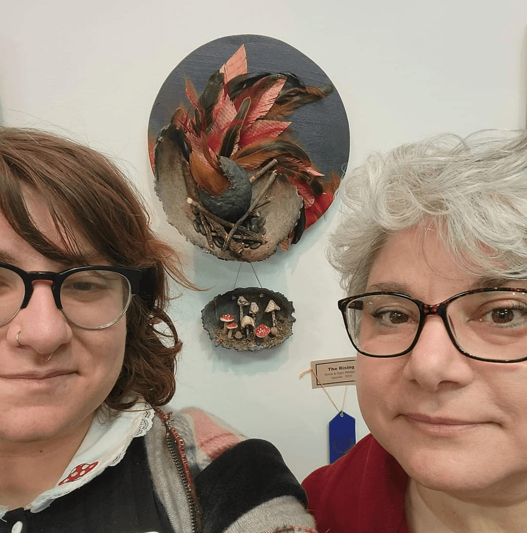 Most visual artists who are showing their work, create independently. Their work has their signature and their signature alone, and I did that for a while on and off. However, in my previous adventure as the owner and pastry chef of a custom cake boutique, I learned that my creative pursuits were greatly enhanced when I worked collaboratively. As my daughter, Sam, was graduating from college with an art degree, we started bouncing ideas off each other for different projects. We found that we were helping each other create things that were better than if either of us forged on alone.