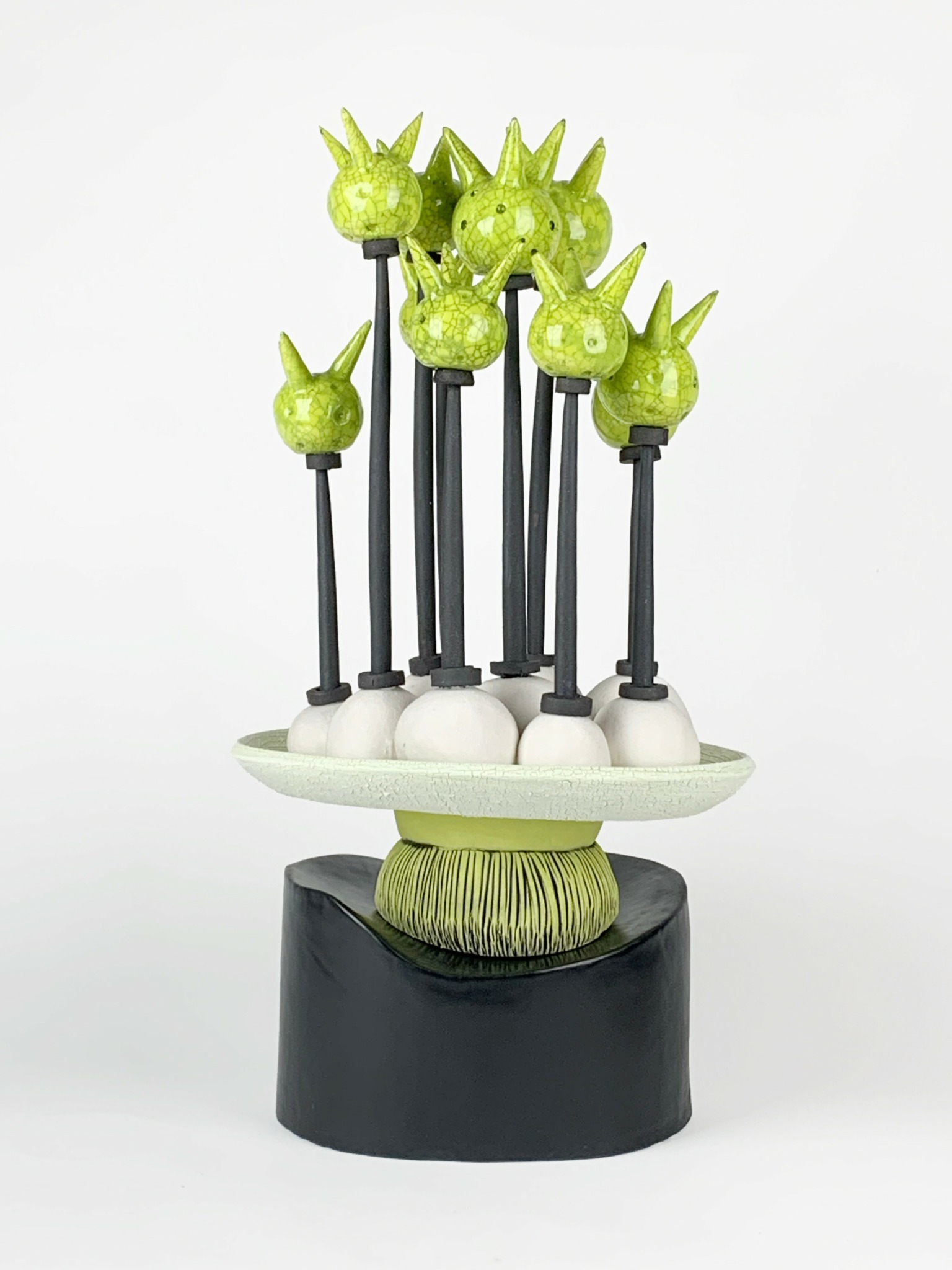 I am drawn to clay for its geologic resonance, working with it feels like making new rocks, echoing the earth’s own cycles of transformation. Its malleability allows for immediacy, while its history ties me to centuries of makers and experiments. I see myself as part of that lineage, benefiting from discoveries that came before while adding my own to the continuum.