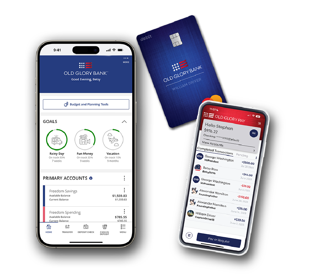 Today, Old Glory Bank serves customers in every corner of America. Our digital platform means you can open an account, deposit checks, pay bills, and run your business from the palm of your hand. But unlike some online-only fintech companies, we’re the real deal. We are a fully FDIC-insured bank with the experience and stability of more than 100 years behind us. Whether it’s a family looking for a simple checking account, a small business owner building their dream, or a first responder who deserves special recognition and support, we offer products designed to meet everyday needs with extraordinary care.
