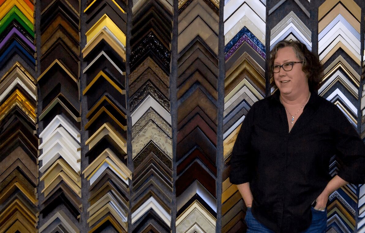 I have always had a knack for the creative. Living in Nashville it’s a very creative place to learn and grow which I have loved. In the 80’s, I worked at Michaels in the framing department. In the 90’s, I ran a frame shop for a mom and pop company. I tried to make a change into the corporate world – I had my securities license but quickly found a 9-5 office job was not for me. So I reached out to some of my former clients (small business owners, designers, artists) , maybe 50 people in total, that I had already built a relationship with letting them know that I was going to try framing part time on my own. This was about the time that Nashville was about to explode – Hatch Show Prints became very popular, the Bridgestone Arena was built, and restaurants were opening left and right. I honestly think I was just brave enough to try and differentiate myself – no traditional marketing, no building, no branding per se. Just me at home, in my converted garage. Shortly after the letters went out, I got very sick and needed insurance so I worked part time at the mall while doing my side hustle for almost 10 years! During that time, I kept planting seeds and would get new clients through word of mouth, ‘someone told someone about Framed!’ or someone changed jobs and took me along to the new company, etc.