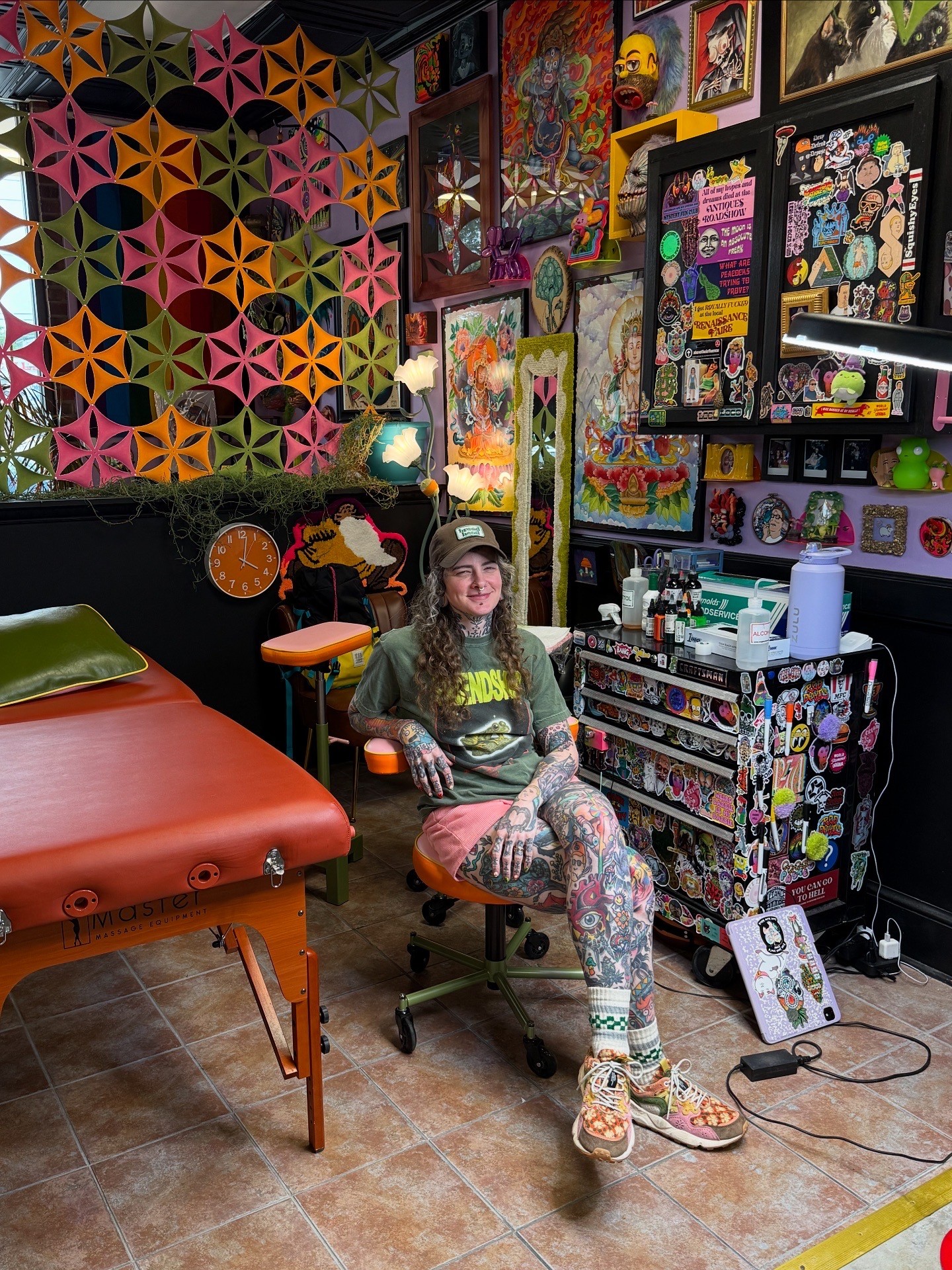 As a collective, I do not make any money off any of the artists in the shop. I have the peace of mind of knowing that no one can feel taken advantage of. I am still an owner and do more work on the back end, like keeping up on and fronting supplies until the end of the mont- I add up all the supplies we’ve spent along with the upcoming rent, and split the bills evenly between all of us, including myself.