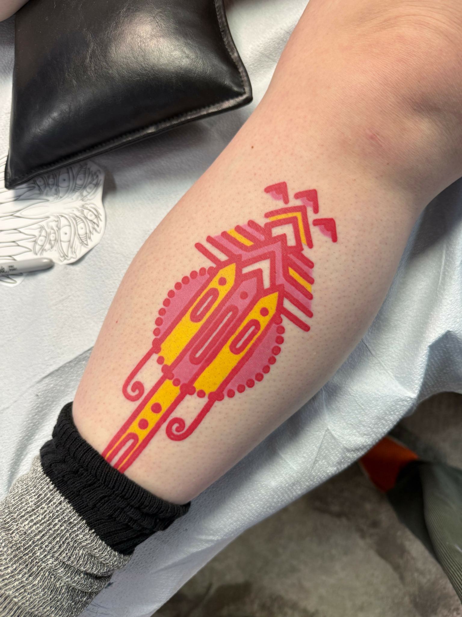 The most meaningful part of my job is creating pieces of art that people will wear for their lifetime. I have a page of predrawn tattoo designs that I’ve created for people to get tattooed. When one of my designs speaks to someone, it’s special to me because they are wearing my original art forever. I put a lot of love and care into my designs, and I want my client to feel confident in their skin wearing that tattoo.