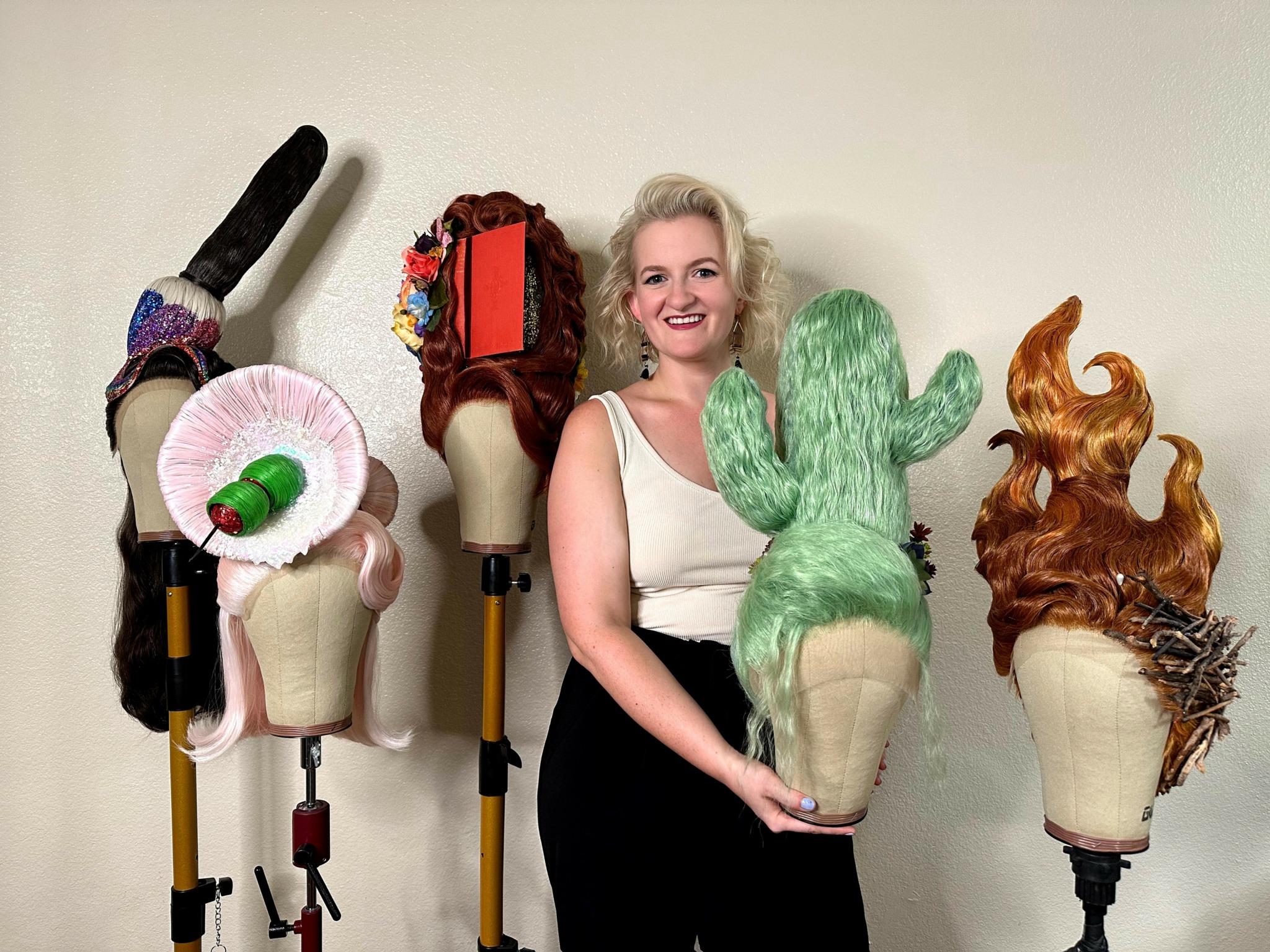 My name is Annie Hardt and I’m the founder of The Caged Wig, a small wig business based in Las Vegas. My work centers around caged wigs which are wire structures sculpted into all kinds of shapes and then attached to a wig and styled. I also focus a large part of my business on wig education, teaching others how to build and style caged wigs through hands-on classes, both in my studio and around the world.