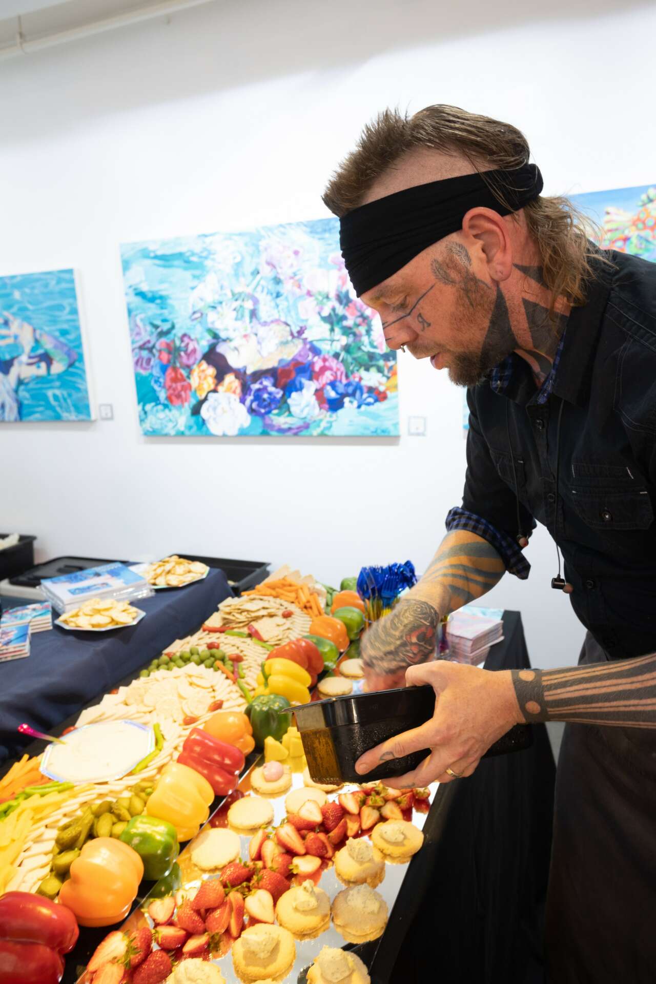 Honestly I’m a pretty strange dude. I’m a West Virginia hillbilly with face tattoos and chrome teeth. The thing that’s helped build my reputation isn’t just my skills in the kitchen, but my ability to catch people off guard. People see me and make a lot of assumptions (which I knew was going to happen when I got these) but then I throw on a big, shiny grin and start talking cheese. Nobody can resist it because it’s so apparent that I LOVE what I do. I don’t care what the topic is, from math to anime to computer programming or social work, if someone speaks with passion and excitement I’ll listen all day. It’s infectious. So I started doing pop ups to get face time with my community and I just let myself get excited talking about the cheeses, the panini of the week, new projects I’m working on, whatever strikes my fancy in the moment. People start to pick up on and share that excitement and they want to be part of it to see what all my fuss is about. And really, looking as crazy as I do makes me very distinct and memorable so people come up and talk over and over at every event. I love it.