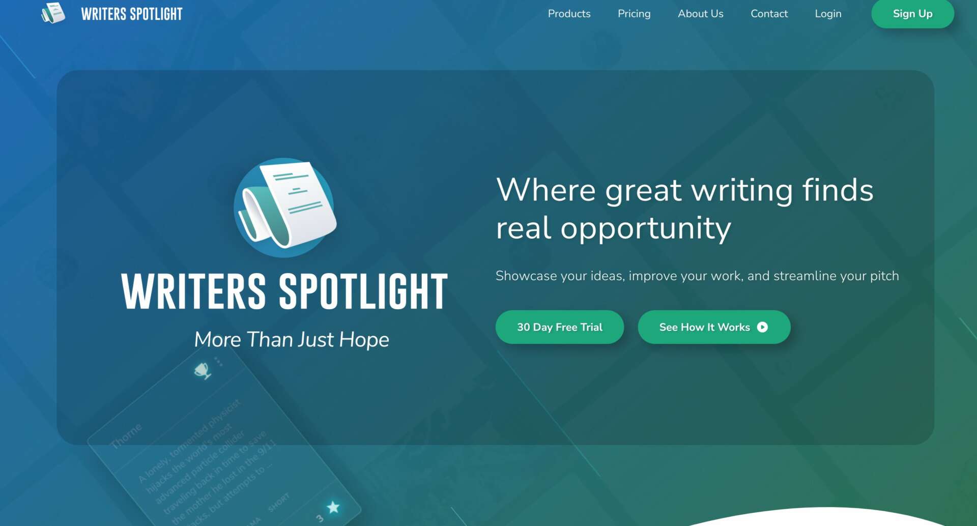 Writers Spotlight was born out of a need we had as screenwriters to have a community where we could work with other writers to improve and asses where our scripts were really at. We noticed a lot of the other sites out there just seemed interested in taking screenwriters money and offering them sub par resources with little to no actual help on their writing. So we created Writers Spotlight. It’s the resource we wish we had when we were starting out eight years ago, and it’s still as needed today as is was back then.