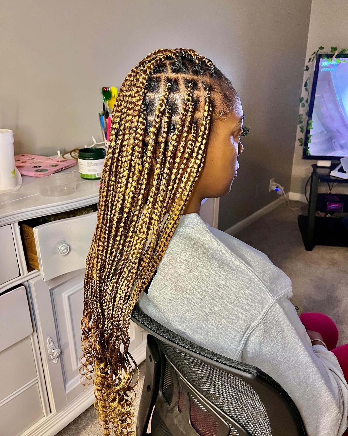 I became interested in hair at a very young age. At first I didn’t think hair would be a passion of mines. I was more of a tomboy. I was outside playing sports, getting dirty, and always wore my hair in a ponytail. My family and I were involved in a grease fire in 2012 that kind of forced me to do my own hair. The fire caused my mom to obtain third and fourth degree burns on her dominant hand (right hand). From that point on I did my hair, my sister’s, and my mom’s hair. I would mostly practice protective hairstyles such as box braids and senegalese twist. Senegalese twist were very popular during that time, so that was my go to hairstyle. I would practice on some of my peers at school, but I felt more comfortable practicing on myself and family. As I mentioned before, in order to be successful you are gonna go through trial and error. My biggest trial and error era was in high school. There were plenty of times where I got discouraged and thought maybe this isn’t for me. The support I got from my peers was little to none. Those who did “support” me did not stick around to trust the process and believe in me. As I got older, I realized that I needed to not only trust my own process but also believe in myself. I can be my biggest critic and downfall at times. I have to remember not to be so hard on myself because we all make mistakes. I just have to build and learn from those mistakes. The services I provide are mostly protective hairstyles such are braids, wig installs, locs, etc. The problems I want to be able to solve for clients is how to properly take care of the hair. Every product does not work for everyone’s hair texture. I want to be able to educate my clients on what products are good to use and what hair treatments are useful to make the hair grow, stay moisturized, and healthy.