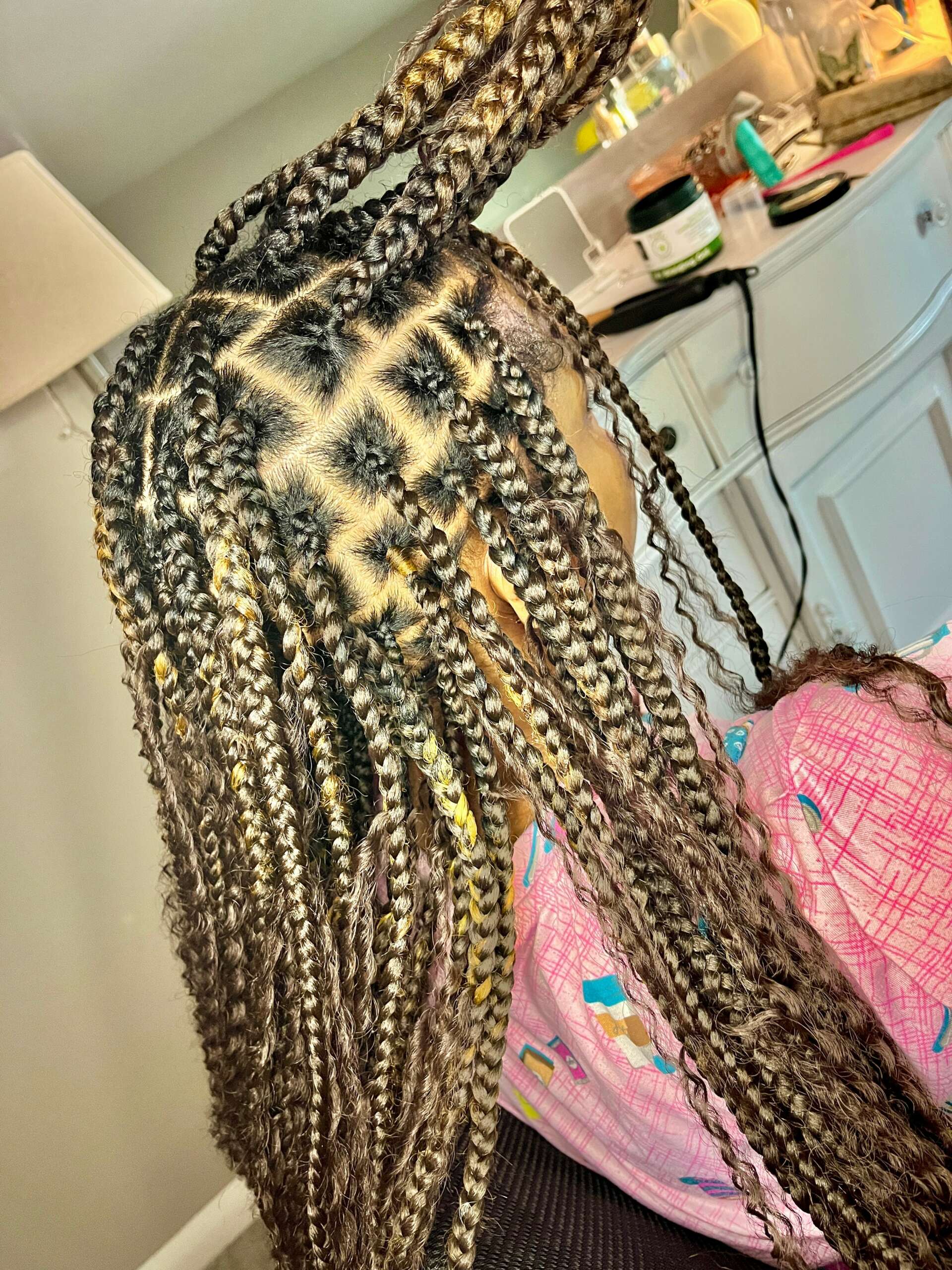 I became interested in hair at a very young age. At first I didn’t think hair would be a passion of mines. I was more of a tomboy. I was outside playing sports, getting dirty, and always wore my hair in a ponytail. My family and I were involved in a grease fire in 2012 that kind of forced me to do my own hair. The fire caused my mom to obtain third and fourth degree burns on her dominant hand (right hand). From that point on I did my hair, my sister’s, and my mom’s hair. I would mostly practice protective hairstyles such as box braids and senegalese twist. Senegalese twist were very popular during that time, so that was my go to hairstyle. I would practice on some of my peers at school, but I felt more comfortable practicing on myself and family. As I mentioned before, in order to be successful you are gonna go through trial and error. My biggest trial and error era was in high school. There were plenty of times where I got discouraged and thought maybe this isn’t for me. The support I got from my peers was little to none. Those who did “support” me did not stick around to trust the process and believe in me. As I got older, I realized that I needed to not only trust my own process but also believe in myself. I can be my biggest critic and downfall at times. I have to remember not to be so hard on myself because we all make mistakes. I just have to build and learn from those mistakes. The services I provide are mostly protective hairstyles such are braids, wig installs, locs, etc. The problems I want to be able to solve for clients is how to properly take care of the hair. Every product does not work for everyone’s hair texture. I want to be able to educate my clients on what products are good to use and what hair treatments are useful to make the hair grow, stay moisturized, and healthy.