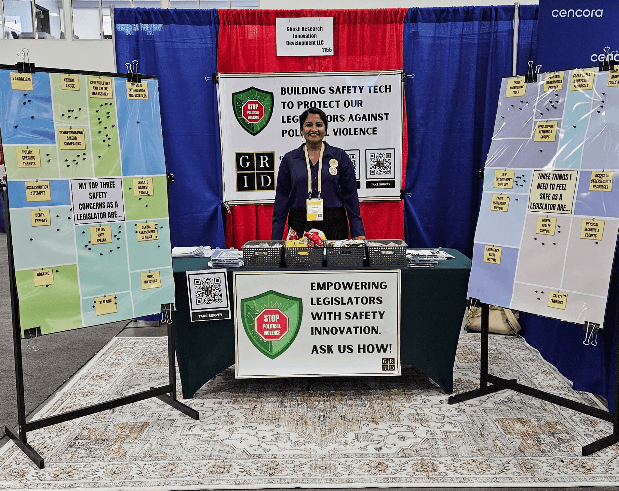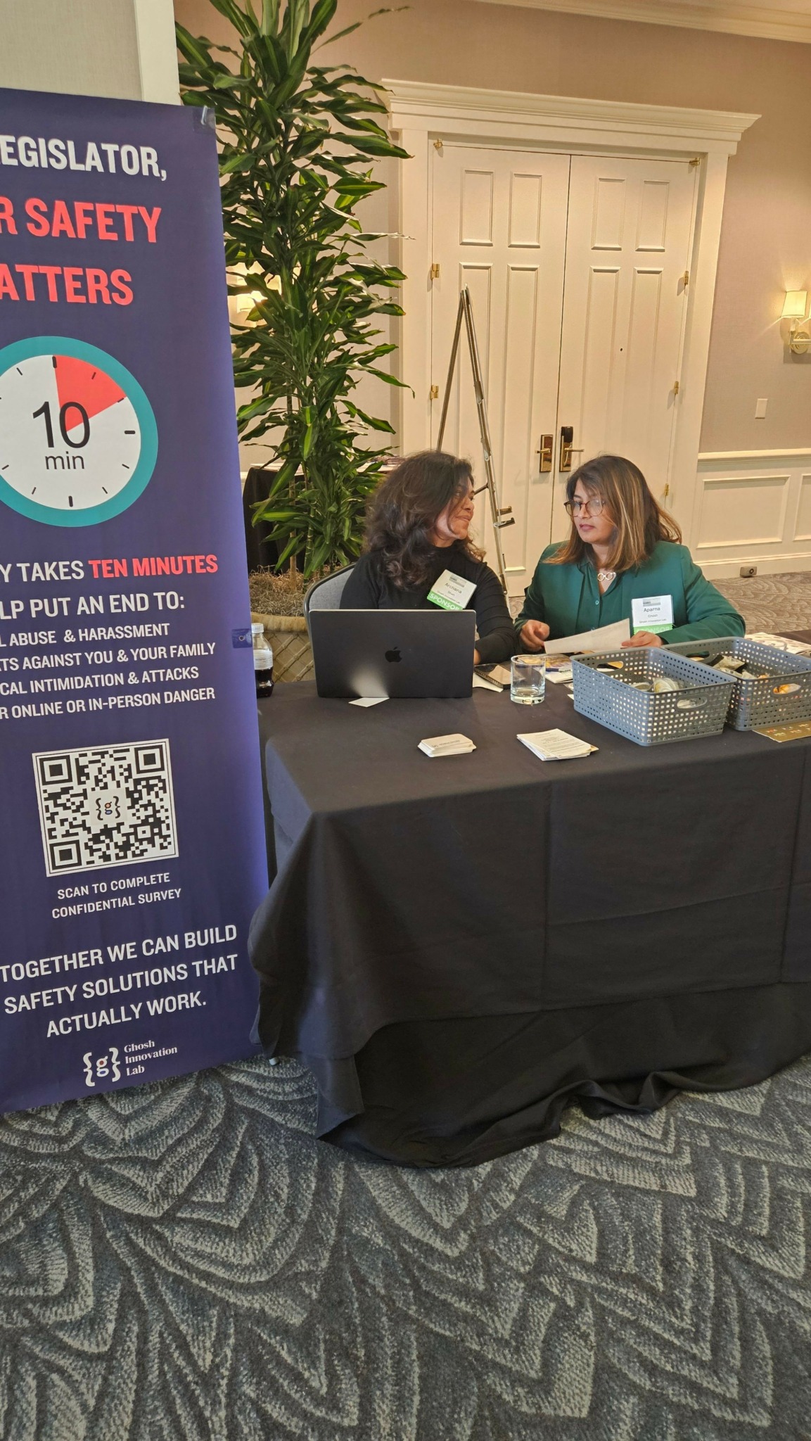 So that hotel room moment was really the birth of what became the Ghosh Innovation Lab. That proposal became our mission statement, and honestly, it’s guided everything we’ve built since then. When we started looking at all the different barriers women face in political office, we quickly realized that safety had to be our first focus. In today’s political climate, it’s become the most urgent barrier. Women leaders are navigating rising hostility, harassment, and violence simply because they chose to serve, and these harms don’t just endanger them personally, they disrupt the institutions they represent.