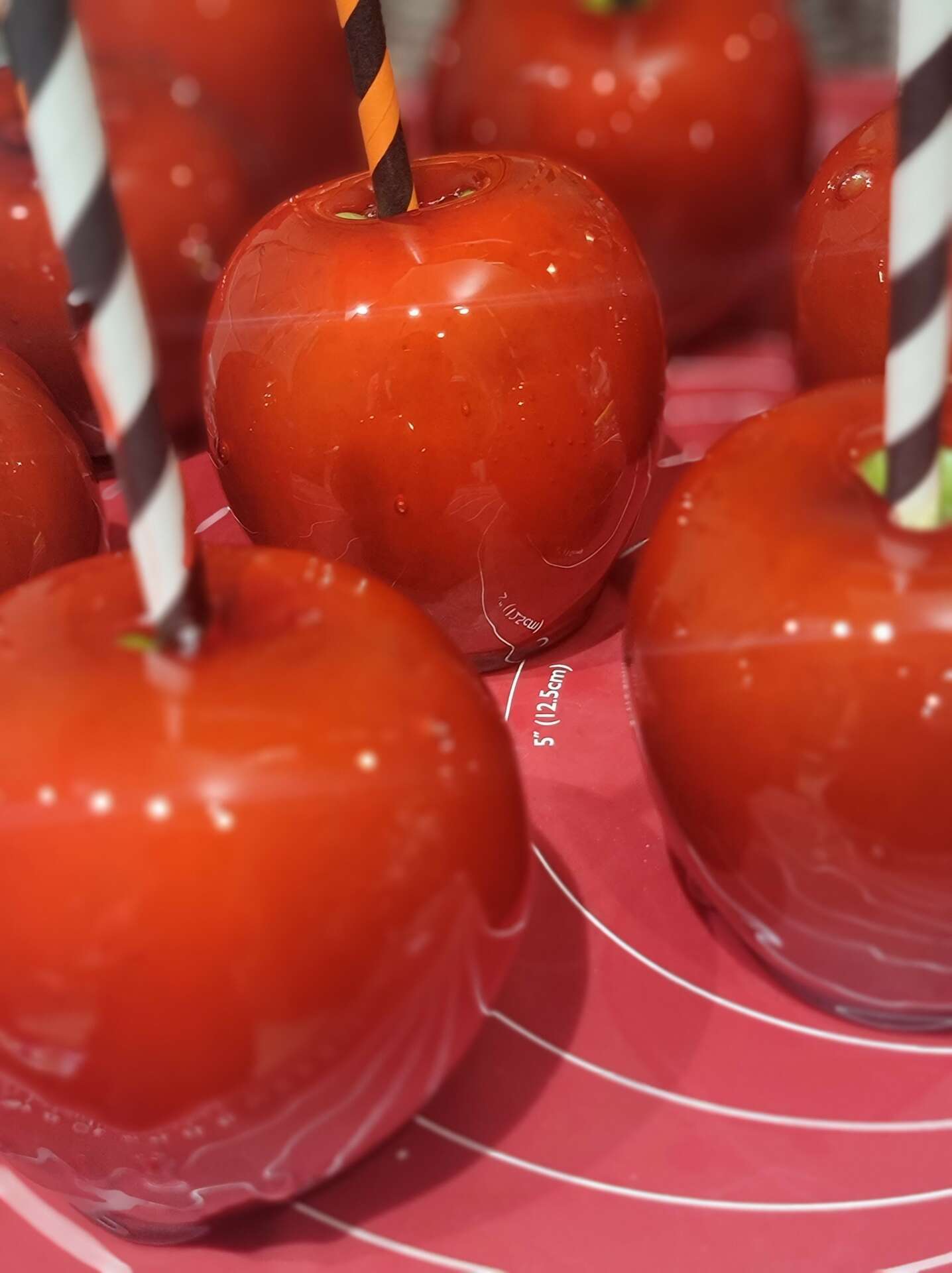 One candy coated apple, strawberry or Pound cake at a time.