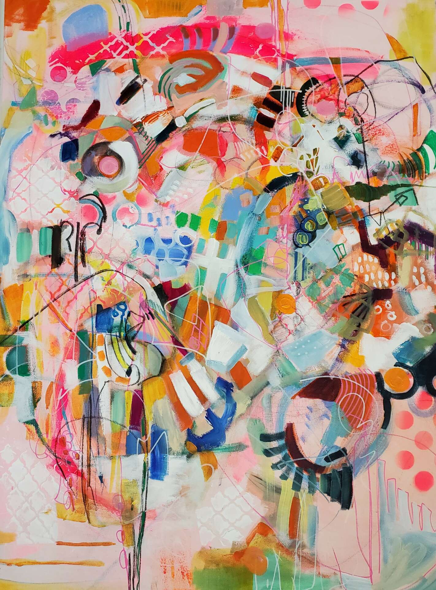 I also am deeply devoted in painting a narrative for clients that express dynamic movement, the belief that we are fractured but insanely valued, and that story and wonder can offer windows out of grief and challenge. Color is my love language when it comes to painting with a delicious side of odd, unexpected juicy tidbits.