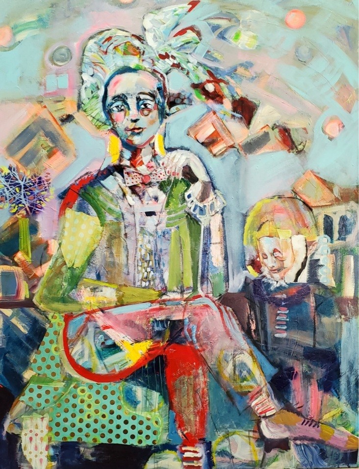 I also am deeply devoted in painting a narrative for clients that express dynamic movement, the belief that we are fractured but insanely valued, and that story and wonder can offer windows out of grief and challenge. Color is my love language when it comes to painting with a delicious side of odd, unexpected juicy tidbits.