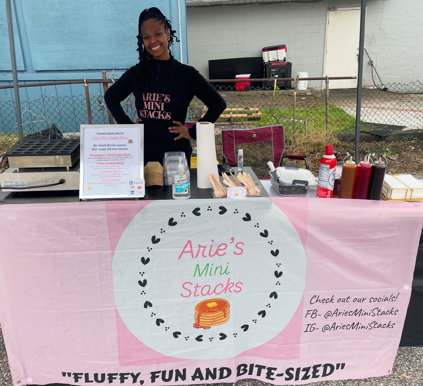 I’m Ariel, but for short all my friends call me Arie! I am a licensed nurse, wife, mama of 1 and a world traveler! I love caring for people, whether it’s through nursing or serving up sweet mini pancakes! Serving others and giving back to the community are my favorite things! I’m most proud of how my business brings people together. Seeing customers smile, connect, and create happy memories over my mini stacks make everything worth it.