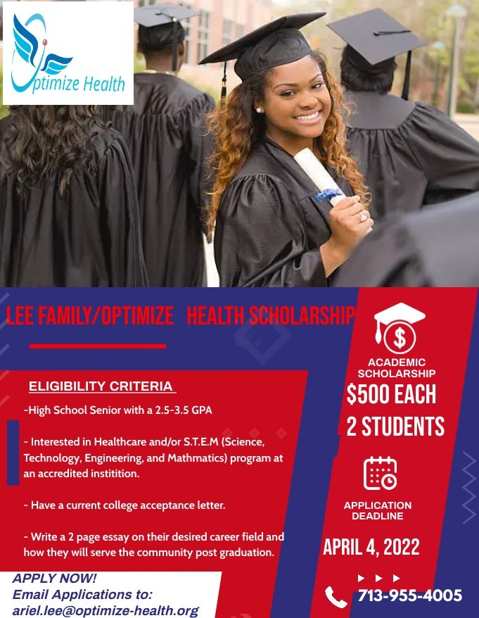 Ariel is an author of 3 eBooks, on Diabetes, Hypertension, Congestive Heart Failure. Optimize Health is certified as by the City of Houston- Women Business Enterprise, Minority Business Enterprise, Texas Historically Underutilized Business, and Hire Houston First. Ariel was privileged to be a Finalist for the Greater Houston Black Chamber Pinnacle Upstart Award 2020 and 2021 Pinnacle Award nominee. She is an active member of Windsor Village United Methodist Church- for over 10 years – in which she serves as a volunteer with the youth ministry. Optimize Health/Lee Family provides annual financial scholarships to underserved high school students in Louisiana.