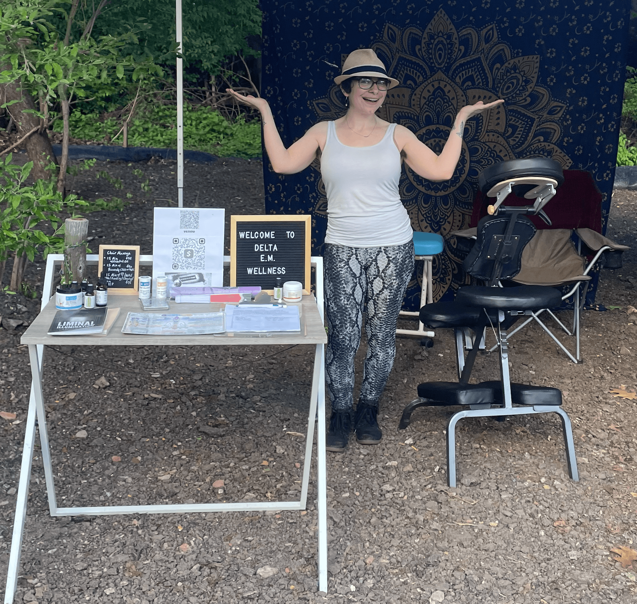 I believe that alternative wellness found me just as much as I found it. I come from a family of artists, musicians and healthcare professionals and I felt strongly that I wanted to use my upbringing for betterment. I had been working in a bar in Southern New Jersey and felt like I was contributing to people’s problems by enabling with alcohol and distraction and I was craving a healthier lifestyle overall. In 2014, I uprooted myself to Pennsylvania to pursue my passion for body work and energy work, eager to find space in the field of healthcare where able to be creative and have impact. Again, I found myself surrounded by distraction by design working in a casino setting between 2015-2020, as I established Delta E.M. Wellness, LLC. I became a Certified Sound Healer in 2022 after a spiritual inner growth spurt from working at The Four Season’s Crystal-Themed Hotel Spa in Center City, Philadelphia. I am proud of myself for cultivating healthy practices and that I share inspiration, motivation, relaxation, law of attraction, positive psychology, and regular reminders to hydrate, express, and lean into what you are truly passionate about, not to follow the masses.