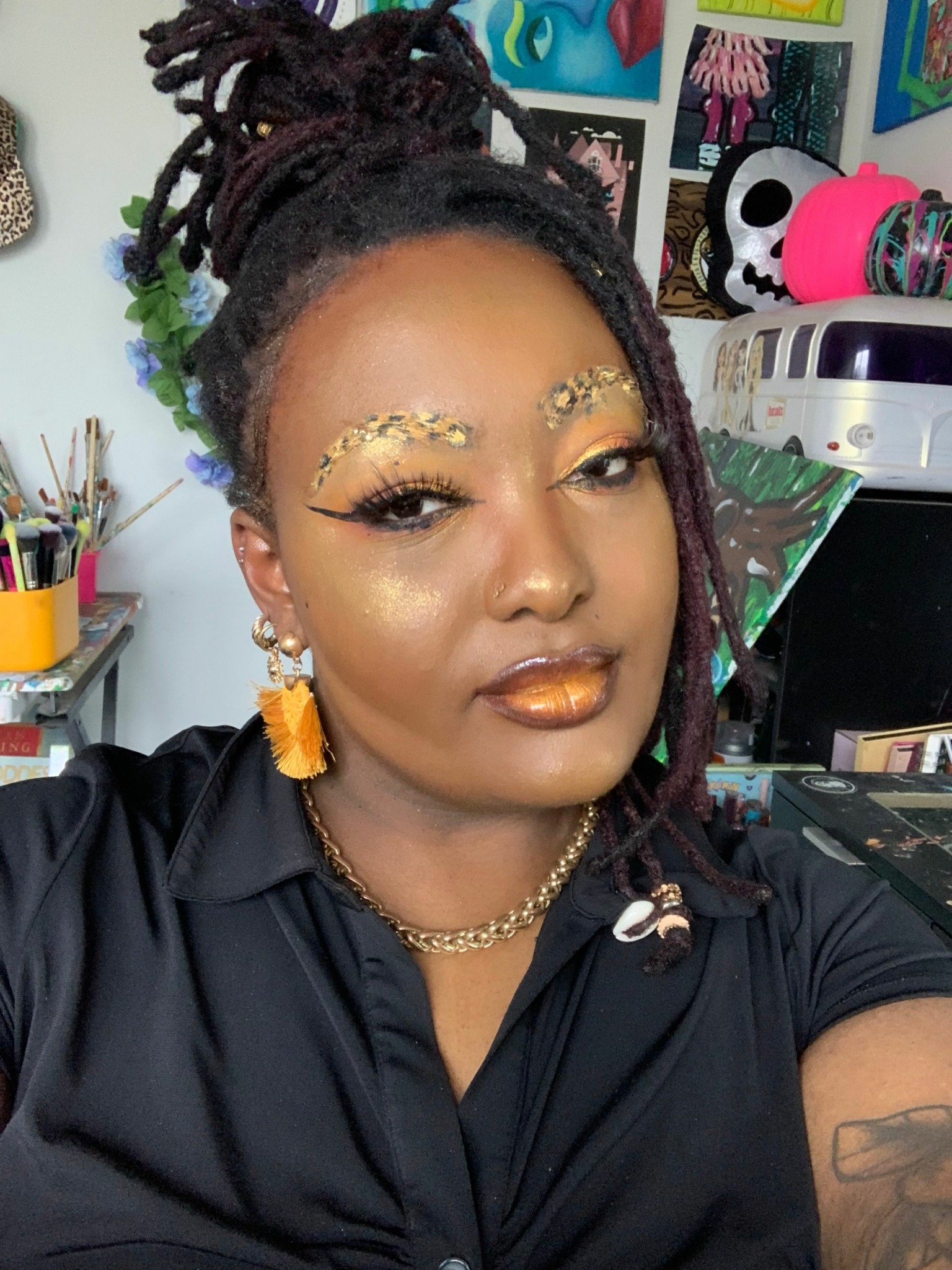My name is Ariel Smith, AKA ArtistryxAriel. I am a multi-disciplinary creative from the Memphis and MidSouth area. I love to write, draw, dance, and more! Within this last year, I have focused on creating paintings inspired by my childhood, culture, and ancestry. My content primarily focuses on my creative makeup looks. However, I create vlogs, cooking videos, art process videos, styling videos, and more for my YouTube channel, ArtistryxAriel. As a freelance creative, I offer a multitude of services like makeup, social media marketing, graphic design, illustration, etc. I have had the pleasure of vending at local events, such as the Memphis Public Libraries Comic Con. If I had to describe myself as a creative, I would say dramatic. I love pushing the boundaries on what is “acceptable”. I am the proudest of my makeup journey. I started face painting when I was in middle school. During high school, I started practicing more with traditional makeup. Within the last year, I have dived into the SFX makeup world. Growing up, I loved shows like Face Off, and I originally wanted to attend a SFX school for higher education. However, I knew it wouldn’t truly be accepted by my close family, so I went to MTSU for Animation. I ended up graduating early with Honors in December of 2020, with a degree in Interdisciplinary Media/Media and Entertainment with a concentration in Animation. After moving back to the Memphis area, I began working as an art teacher. I am grateful for my school community, but I would love to shift careers and start working in the entertainment industry again. As far as future projects, I am currently working on a young adult book, my SFX makeup skills, creative directing for photoshoots, film, live performances, etc., and a film based on the forgotten culture of the MidSouth, primarily Memphis and Mississippi.