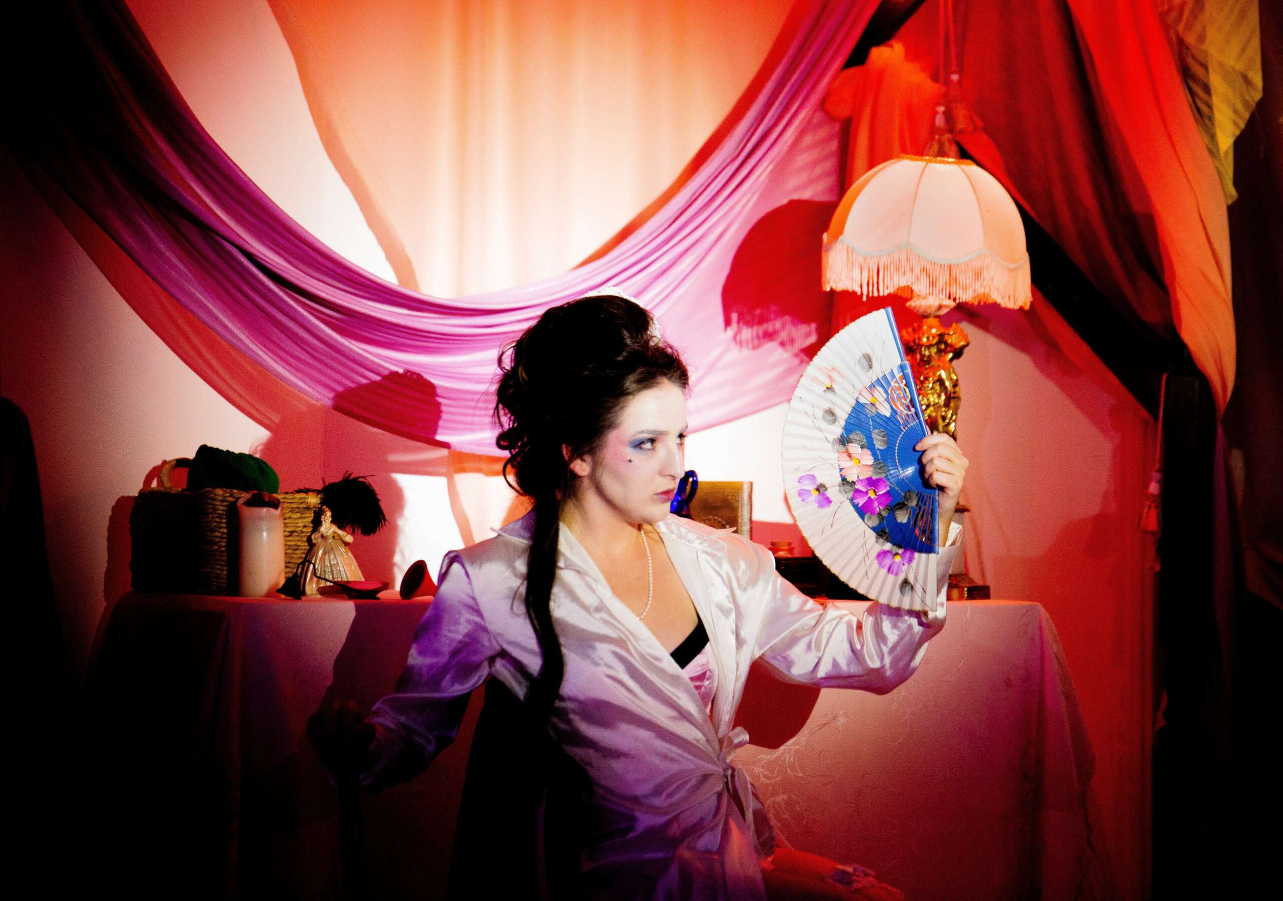 The Saga of Lady Miss is a multi-media theatrical experience. The audience enters the dressing room of Lady Miss Past (Magdalena Pogue), Lady Miss Present (Dougie Maes), and Lady Miss Future (Cléo Flores), as they are preparing for a performance. A man’s voice is heard over the loud speaker; connecting the fates of the Ladies Three.