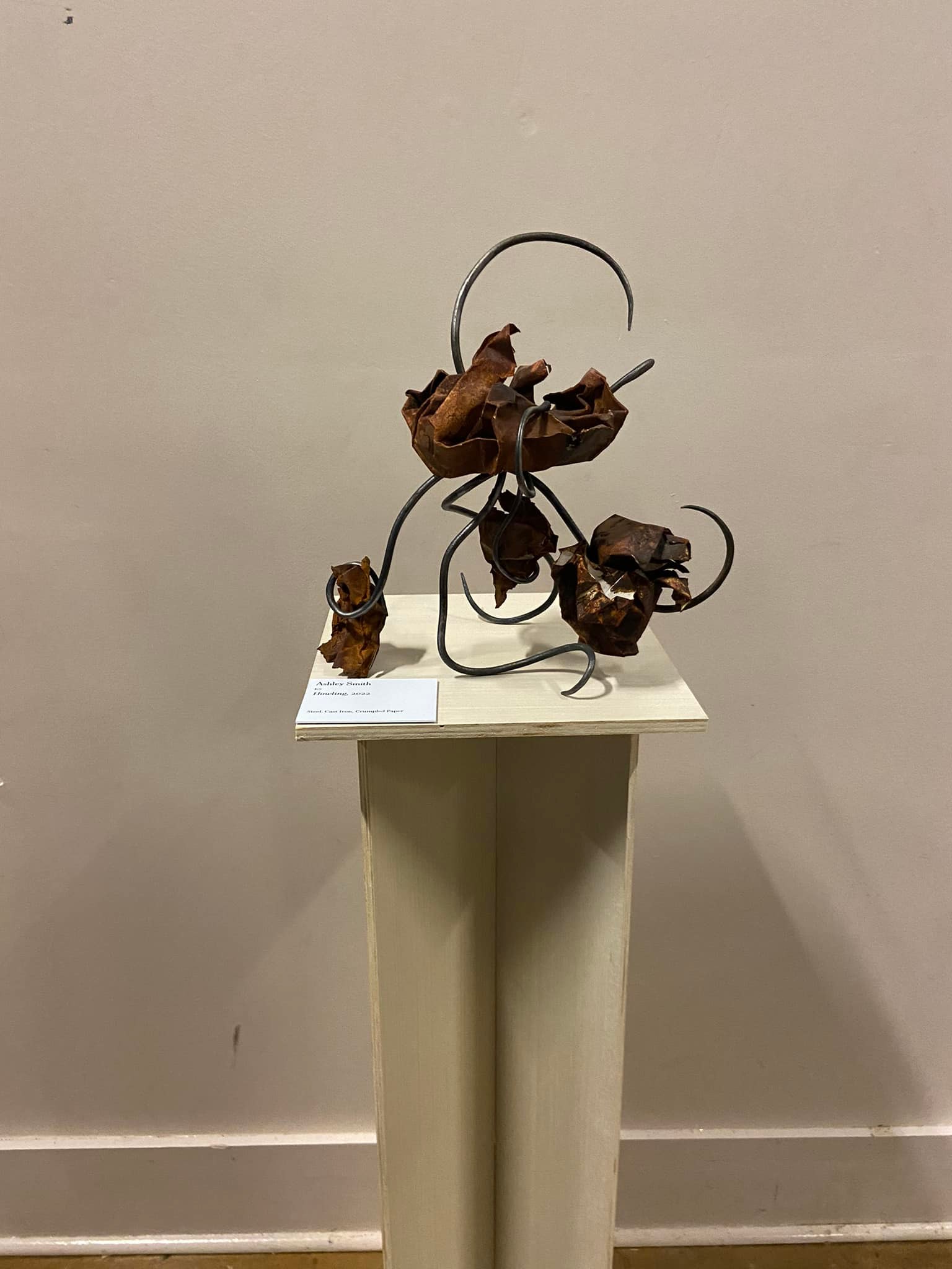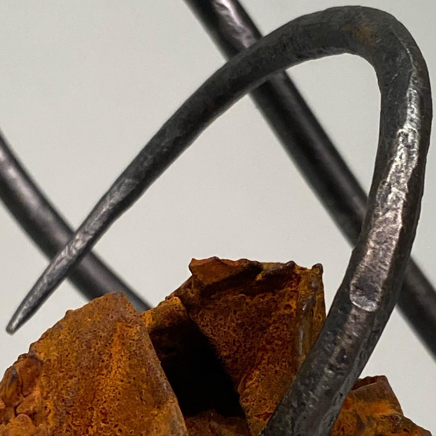 I learned my blacksmithing and metal casting during my undergraduate exploration for my major. I found that the feral nature of the material of iron casting fulfilled my soul and drove my creative interests. The skills I developed through blacksmithing and metal casting I found the most essential is the art of patience. The metal casting process is very time consuming and comes with many steps, so rushing it leads to poor results. The same can be said about blacksmithing, if you rush the smithing process your material will look battered and not clean. Knowing that, there isn’t really anything I could do to speed up the learning process because the way sculpture is made you have to be patient and methodical about the work. The only obstacle that ever got in my way for learning more was my own self-doubt and the lack of confidence in my work.