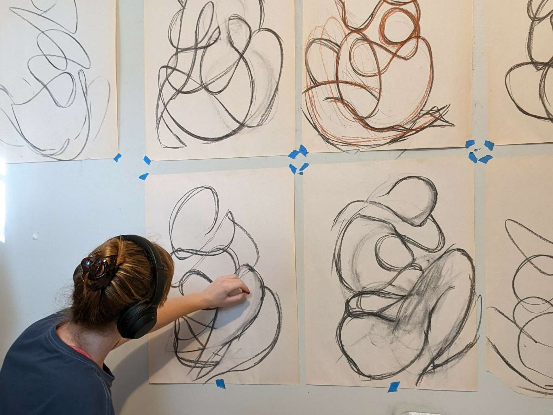 It’s been about two years since I started my art career and it has been such an eye-opening experience. Art is instrumental in the human experience, it helps heal the mind, presents new perspectives, and fosters empathy. I’ve explored many subjects from landscapes to animals and abstracts, learning what speaks to me as an artist along the way. My current work brings intention and focus to my inner artist and outer form, working with acrylics and charcoal. I am exploring different perspectives of the female figure through my everyday experiences, developing twisting abstract figurative shapes. My paintings are done on large canvases to allow for dynamic full-body movement resulting in a composition of the body, by the body. This helps me process my views on the portrayal of women’s bodies and how body language is linked to emotional states.