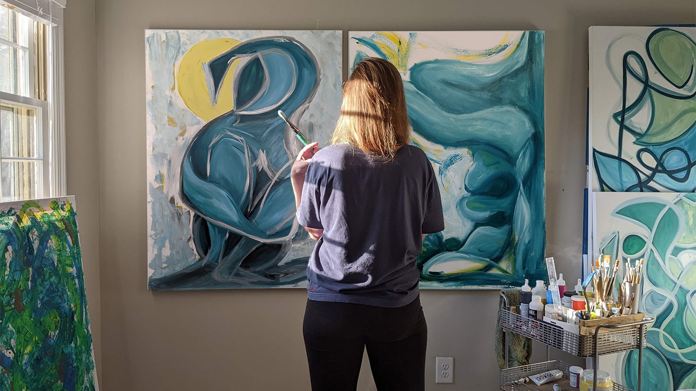 My twenties were a blur of mindless work and distractions accelerating to a crisis of identity. Everything became clear when I found my old art supplies and put paint to canvas. Wonder and joy filled my soul, remembering a long forgotten dream. I started investing in myself, reading books about art and business, and taking art classes. In 2019, I started to create a portfolio of work, gaining momentum to build my own business on the side while I stayed in my marketing job. Everything accelerated in 2020 with the pandemic and finding myself without a job. I dove in head first, setting up my business, sharing on social and networking within the local art community for support.