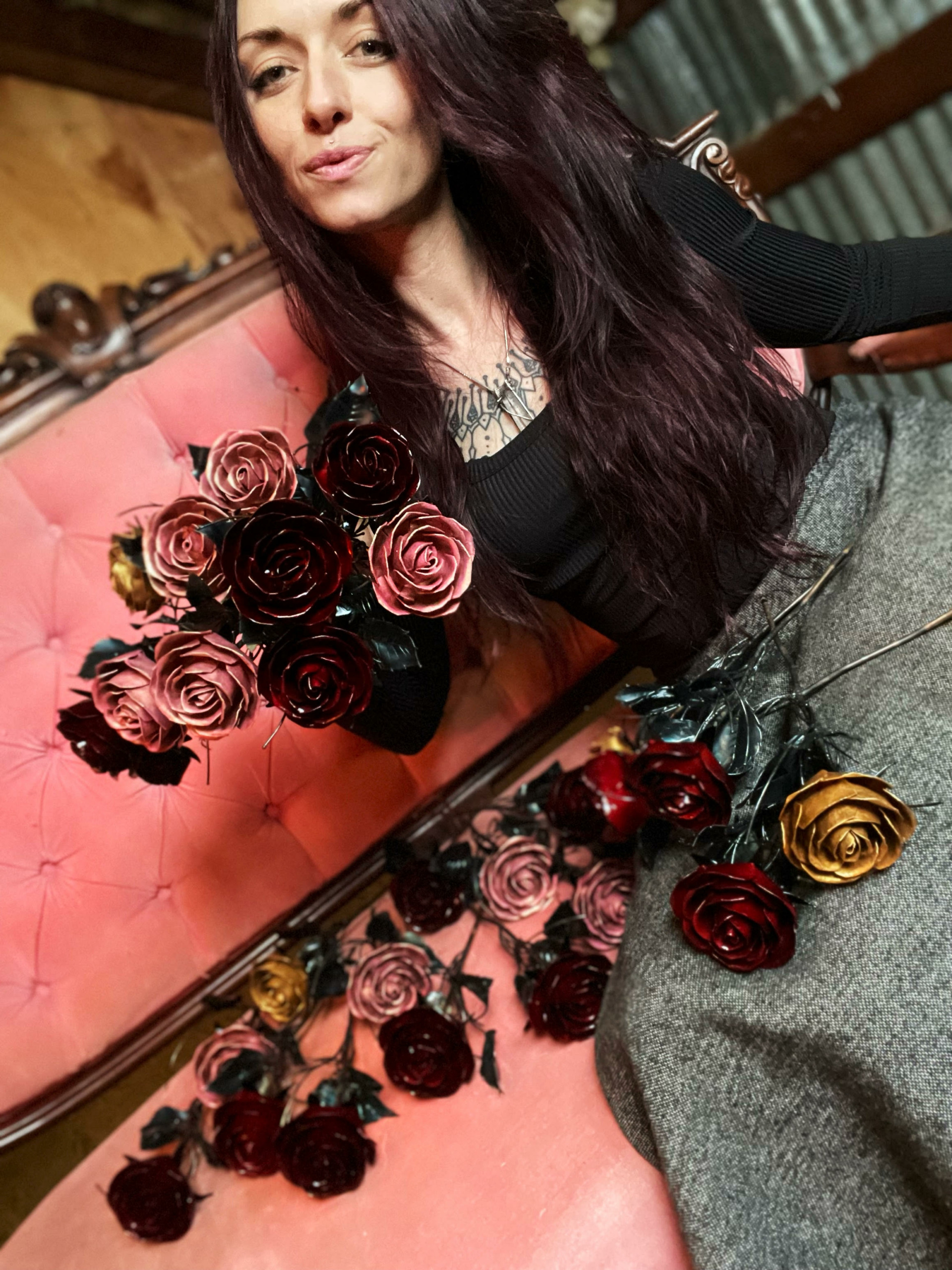 My name is Ashtine Rieke, with a passion of welding for 24 years. Today, I run a successful business called Studio Black Avenue, a metal floral company, providing a variety of blooms to choose from, symbolizing one’s love. What sparked this idea you may ask… We’ll, I give credit to the 3 different welding instructors I had back in high school. They all wanted me to join the union and become an underwater welder. But my dream was to be an arts teacher, which I had the wonderful opportunity of experiencing this moment years ago at my community center, UVA. To this day, I am still passionate about teaching the arts but in 2015 I also desired to fall back on another inspiration I had back in high school. The moment my welding instructor had us students create a rose from steel. That moment, sparked my initial idea of how beautiful it would be to provide metal blooms that never died, to have and to give a gift that forever blooms. I have been blooming forever strong these past 7 years, launching my metal flower business back in 2017.