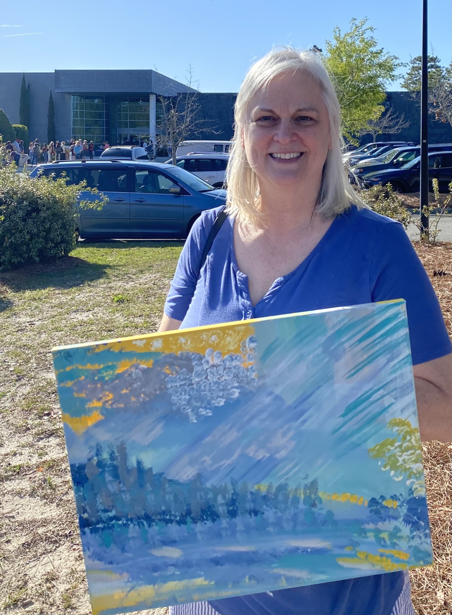 I attempted my first painting when my oldest daughter was in middle school and needed a family member to also paint something in order to enter the two pieces in the Family Art show at her school. One of my sisters was an artist, so during our weekly lunches, I would bring my painting and get tips from her on what to do next.