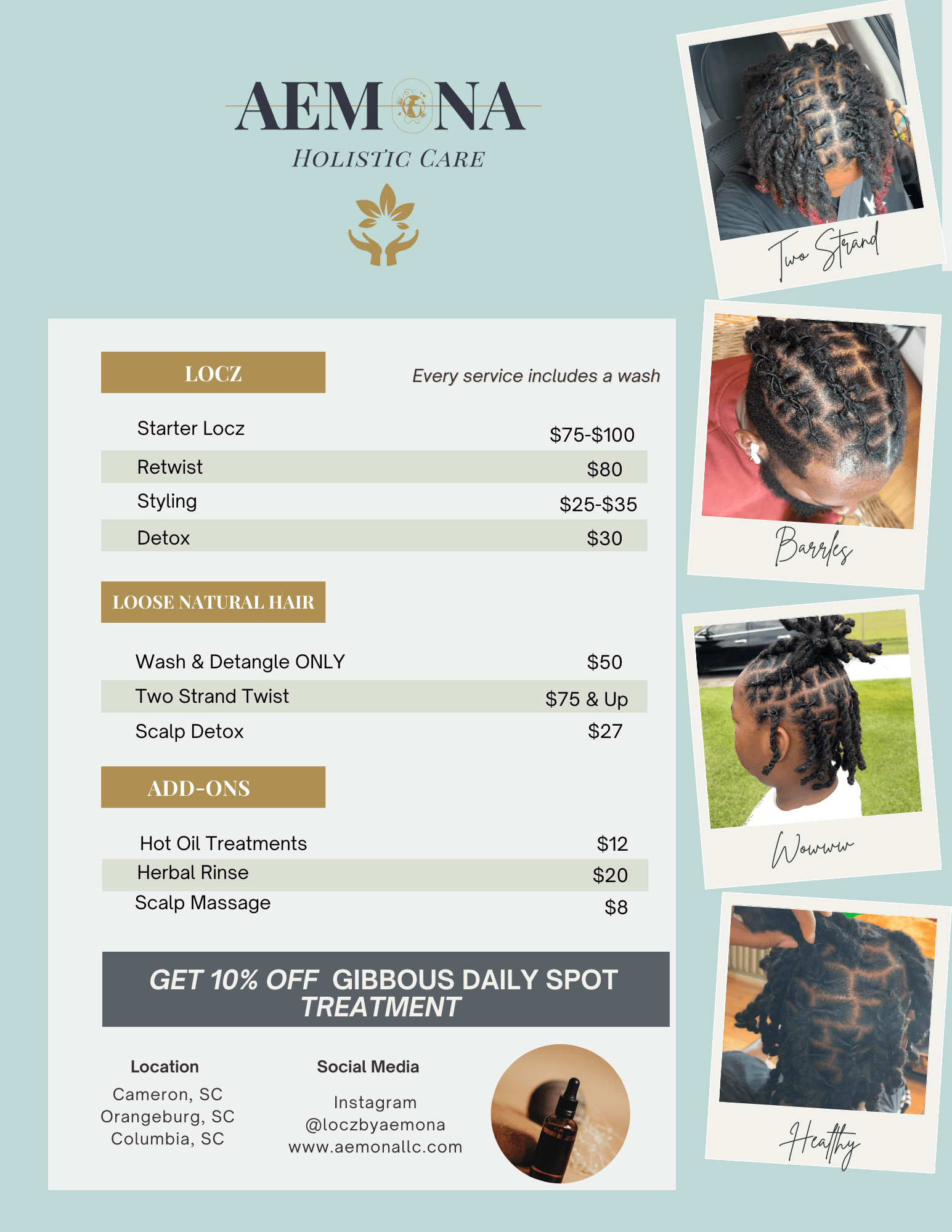 At AeMona, I provide holistic products and services, including esthetics, natural hair care, massage therapy, yoga, and herbal remedies, all designed to promote wellness inside and out. What sets my brand apart is my dedication to using nature’s power to solve everyday self-care challenges while fostering diversity and inclusion.