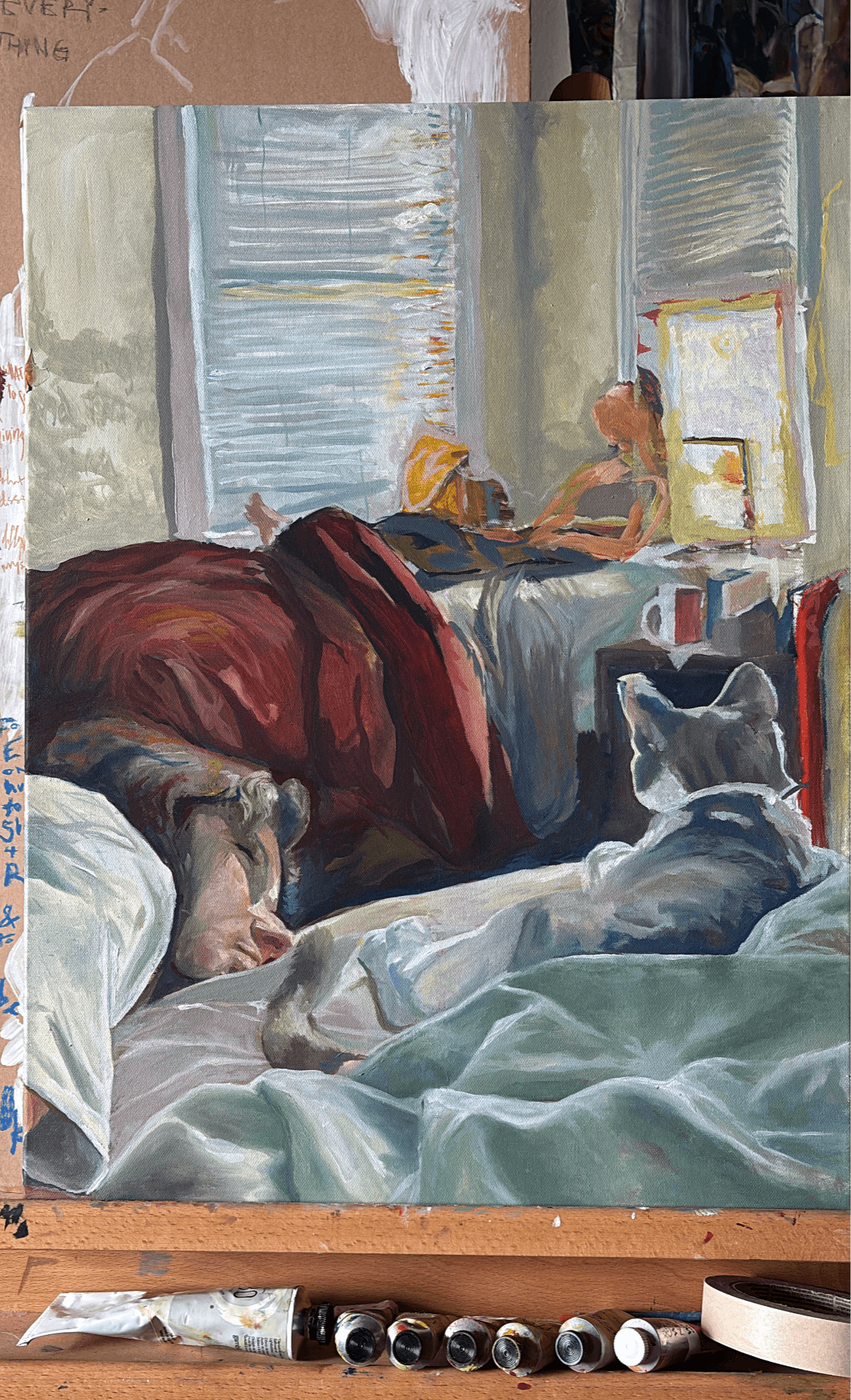 I learned to draw and paint mainly by trial, error, and observation. Creating was something I have found joy and lightness in since I was small. I began seriously drawing as a way to process and connect with the world around me, especially through times of struggle, isolation, or instability. Paying attention to the delicate relationships between spaces and their inhabitants, whether objects or people, and translating them by hand on paper taught me to be grounded and aware. My desire to capture temporary moments, settings, or feelings allowed my work to grow gradually more detailed and life-like. I view my representational art practice as a way to acknowledge and honor the world around me while intentionally deepening my relationship with it. I highly value the skills of recognition and attention to detail; taking time to analyze the lines and negative spaces of otherwise overlooked corners of rooms or relationships inspires a lot of my artistic motivation.